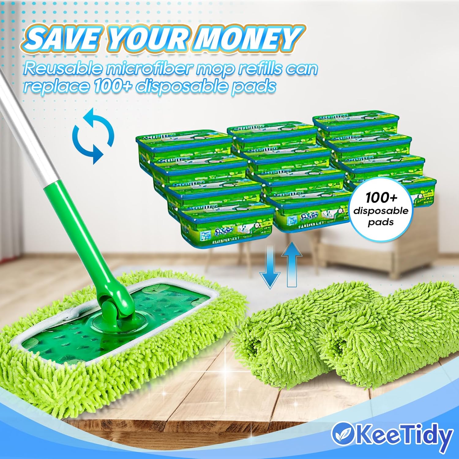 Reusable Mop Pads Compatible with Swiffer Sweeper Mops, 3 Pack 12 Inch Washable Microfiber Wet Pads Refills Dry Sweeping Cloths Heavy Duty Mop Head Replacement for Wet Dry Floor Cleaning, Green