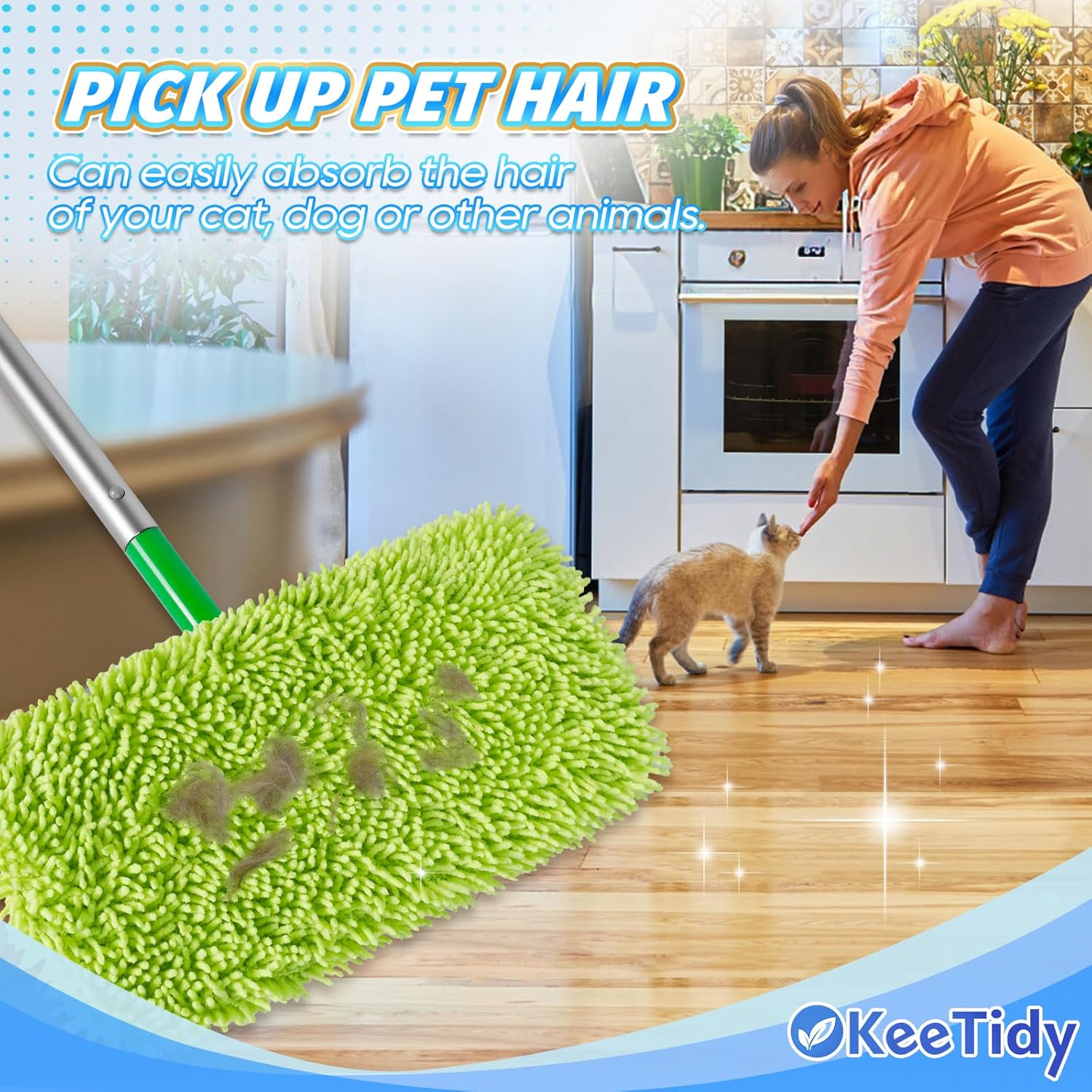 • Reusable Mop Pads- These dry sweeping cloths can be washed up to 100 times to replace hundreds of disposable pads, and you can also use your own cleaners instead of those chemical-laden cleaning towels. A greener solution that saves the planet, reduces landfill waste and saves you money. Besides, super absorbent microfiber fabric with wide coverage for mopping will achieve thorough cleaning meanwhile leave no streak or puddle, making your hardwood floor look new again