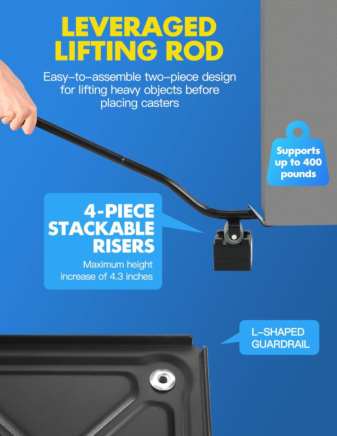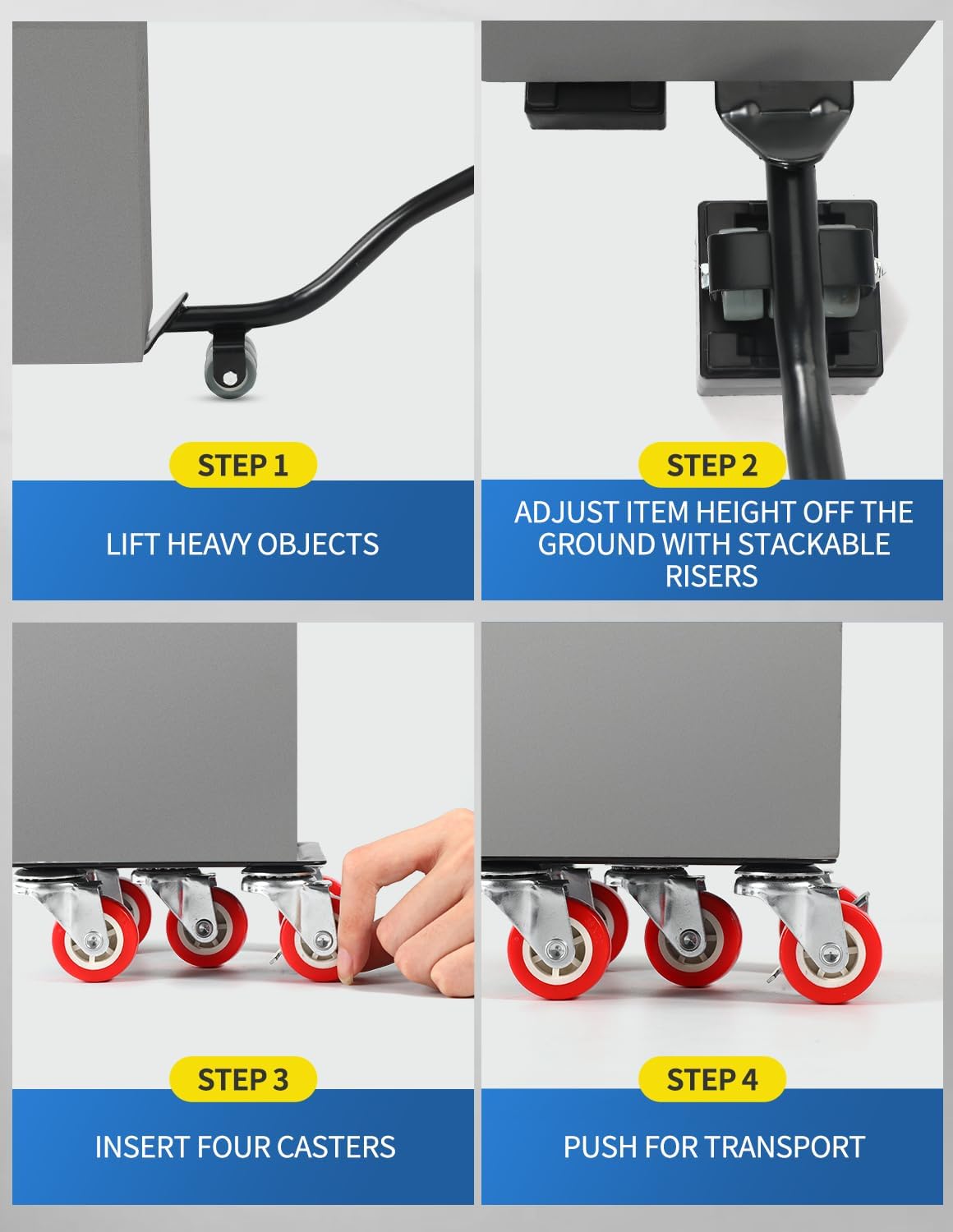 Heavy Duty Industrial Furniture Movers with Wheels, Dolly, Lifter, Sliders, 5 Rollers Casters Cart, Black, 1200 lb Capacity