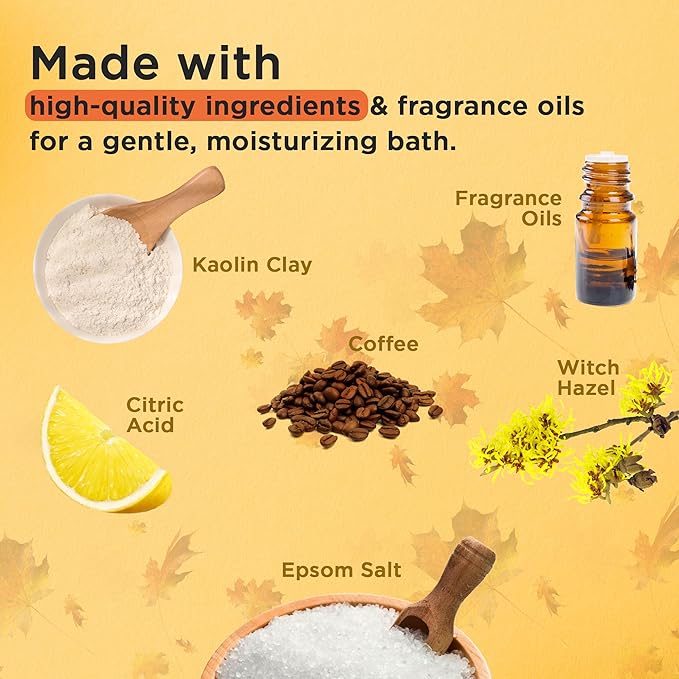 - [Luxurious Pumpkin Spice Scent] Transform your bath into a fragrant fall relaxing experience. Infused with high quality vanilla essential oil and comforting aroma of pumpkin spice, cinnamon, and nutmeg.