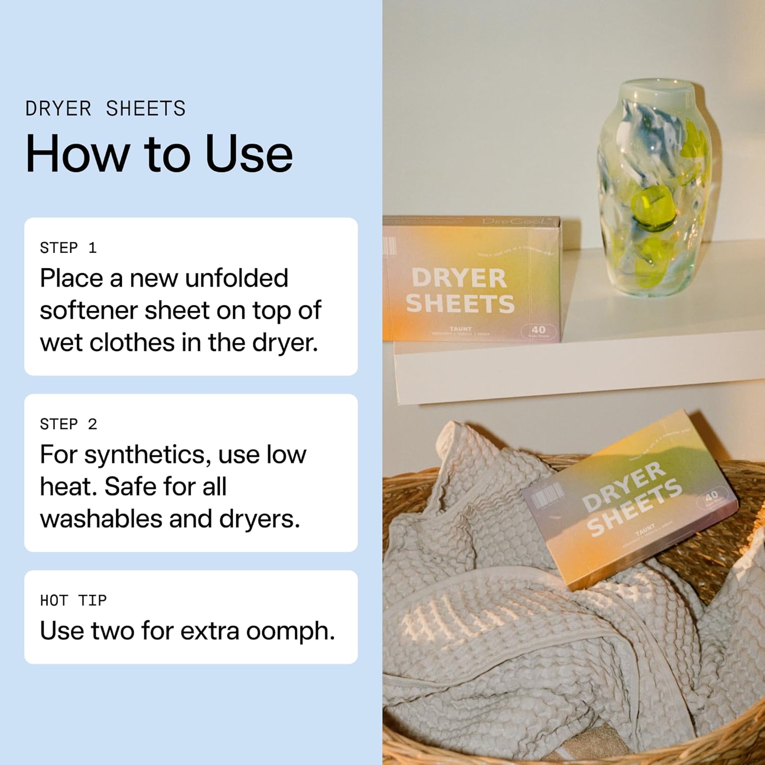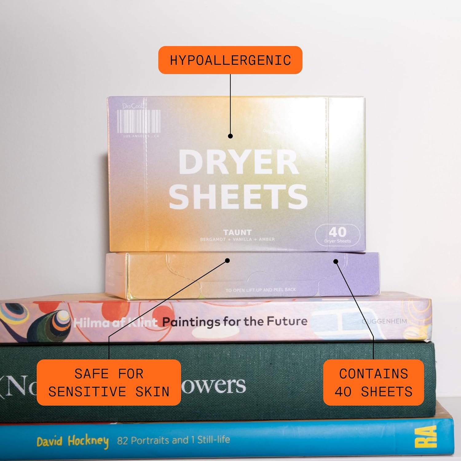 DedCool Dryer Sheets | 01 Taunt | 40 Count | Non-Toxic, Vegan Fabric Softener Sheets | Bergamot, Vanilla & Amber Scent | Gentle on Sensitive Skin | Softens & Freshens | Premium Laundry Supplies