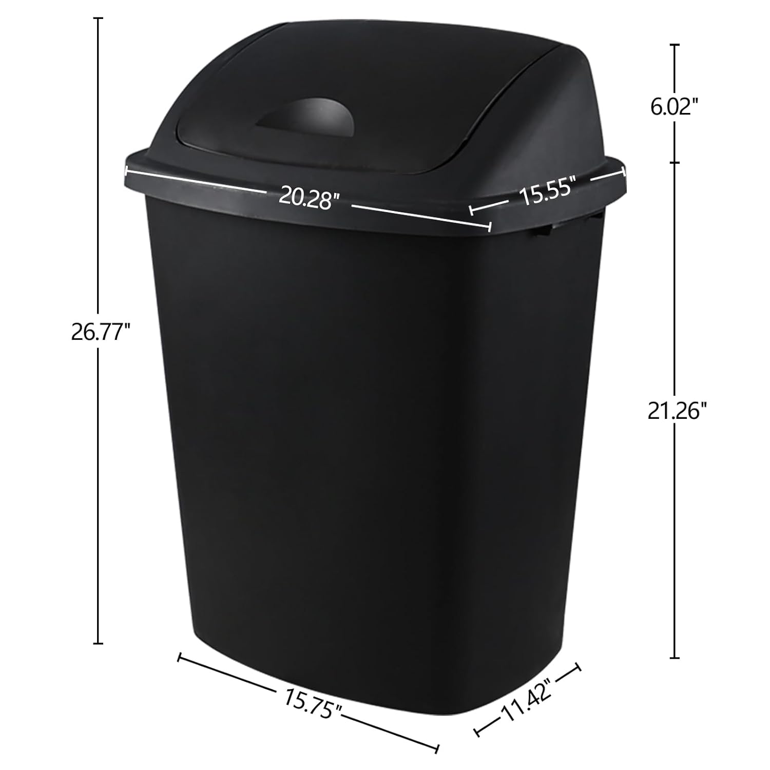 Zopnny 4-Pack 18 Gallon Tall Kitchen Swing Top Garbage Can, Plastic Swing Top Lid Trash Can, Black