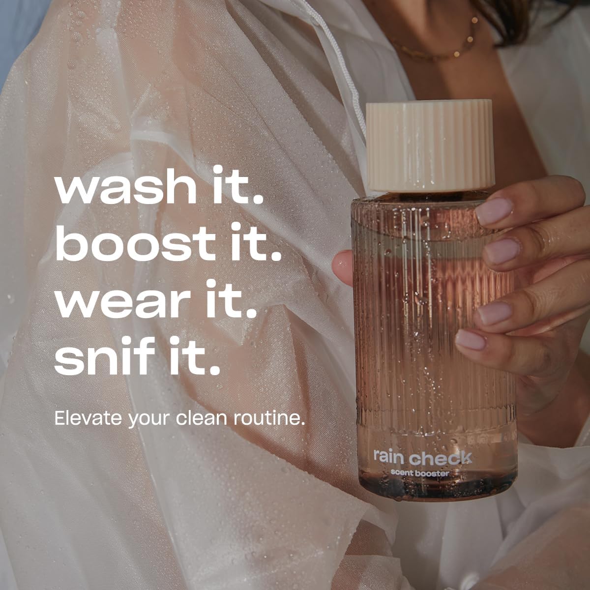 - SCENT PERFORMANCE: We think of Rain Check as a crisp, fresh fragrance. Our Liquid Scent Boosters are designed to deliver fragrance through wash and dry cycles at any level.