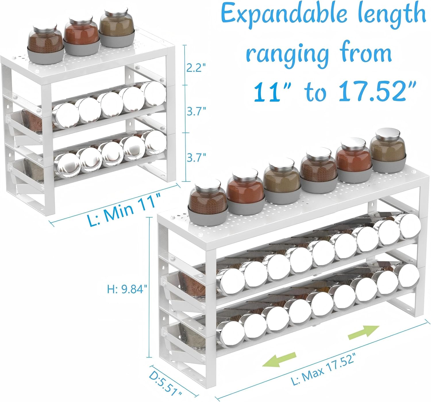 - ⭐【Flexible & Customizable Organization】Our expandable spice rack organizer offers adjustable shelves that can be positioned to fit your specific spice collection. Stackable design allows for vertical expansion, making it perfect for any cabinet, countertop, pantry, cupboard, or wall mount.