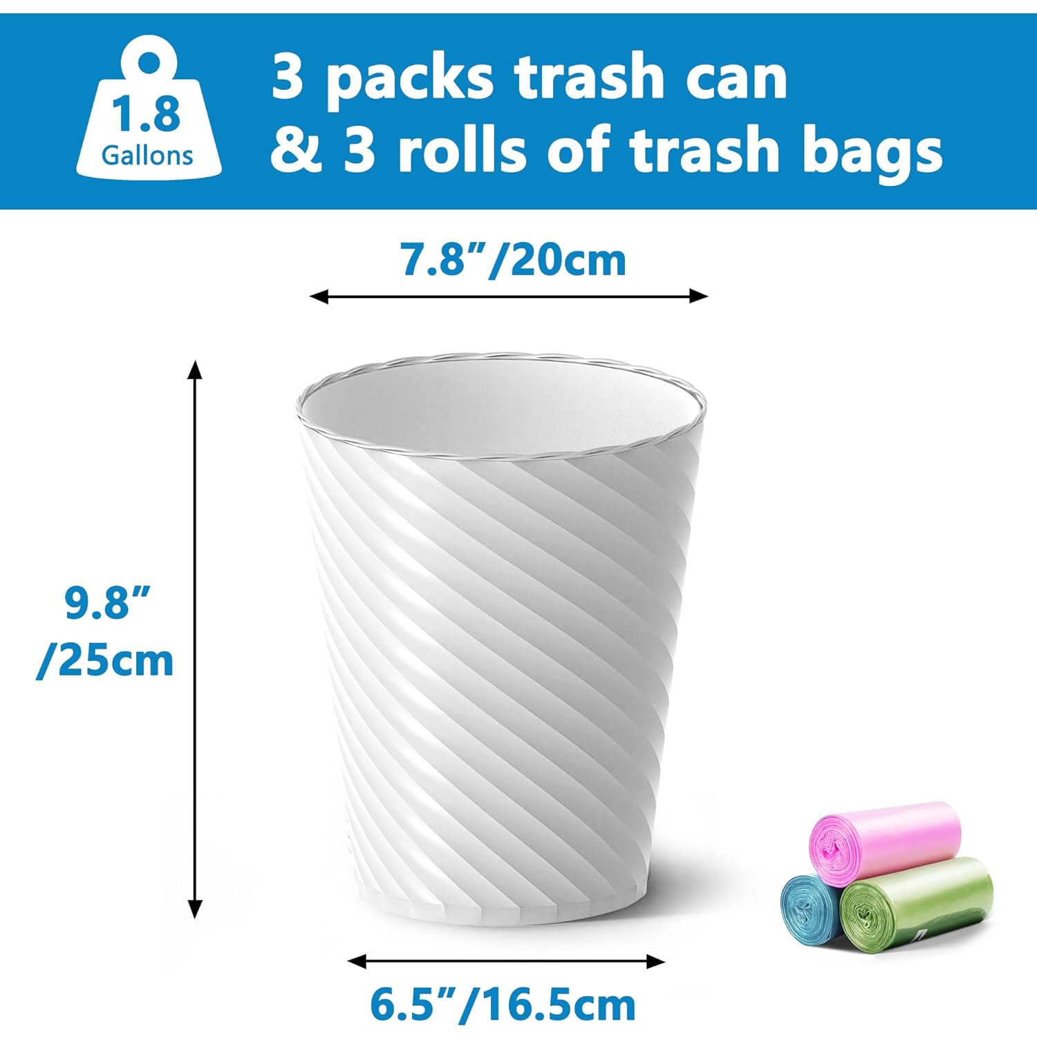 - ăVersatile applicationăIdeal for a wide range of settings including offices, bathrooms, bedrooms, kitchens, and more, offering convenient waste disposal wherever you need it. Additionally, we've included three rolls of extra-thick garbage bags for your convenience.