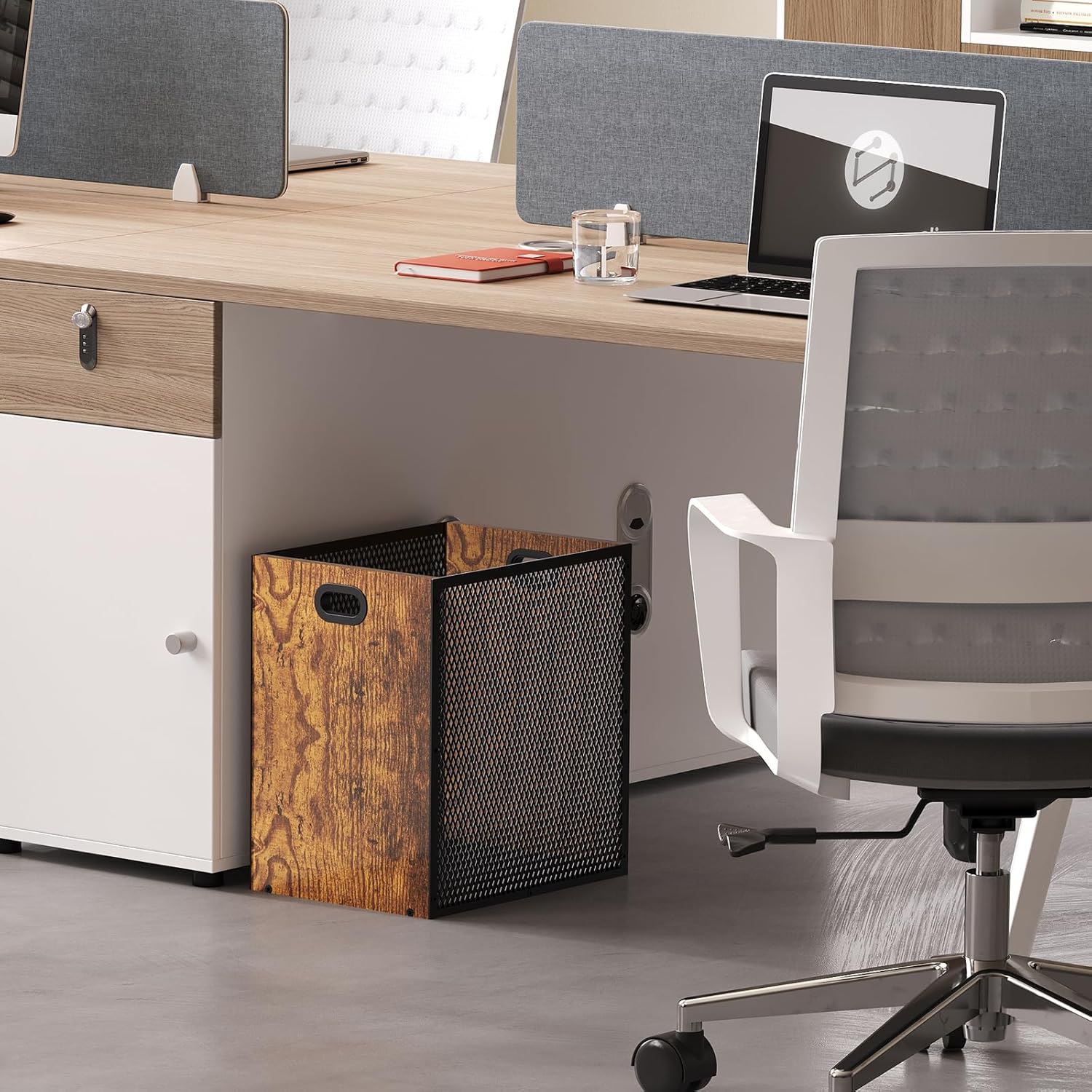 - ăRetro Industrial Style DesignăThis trash can is made of iron and wood, combining retro and modern elements. The unique industrial style is suitable for office garbage cans and bedroom trash cans, perfectly integrates into various home or office environments.