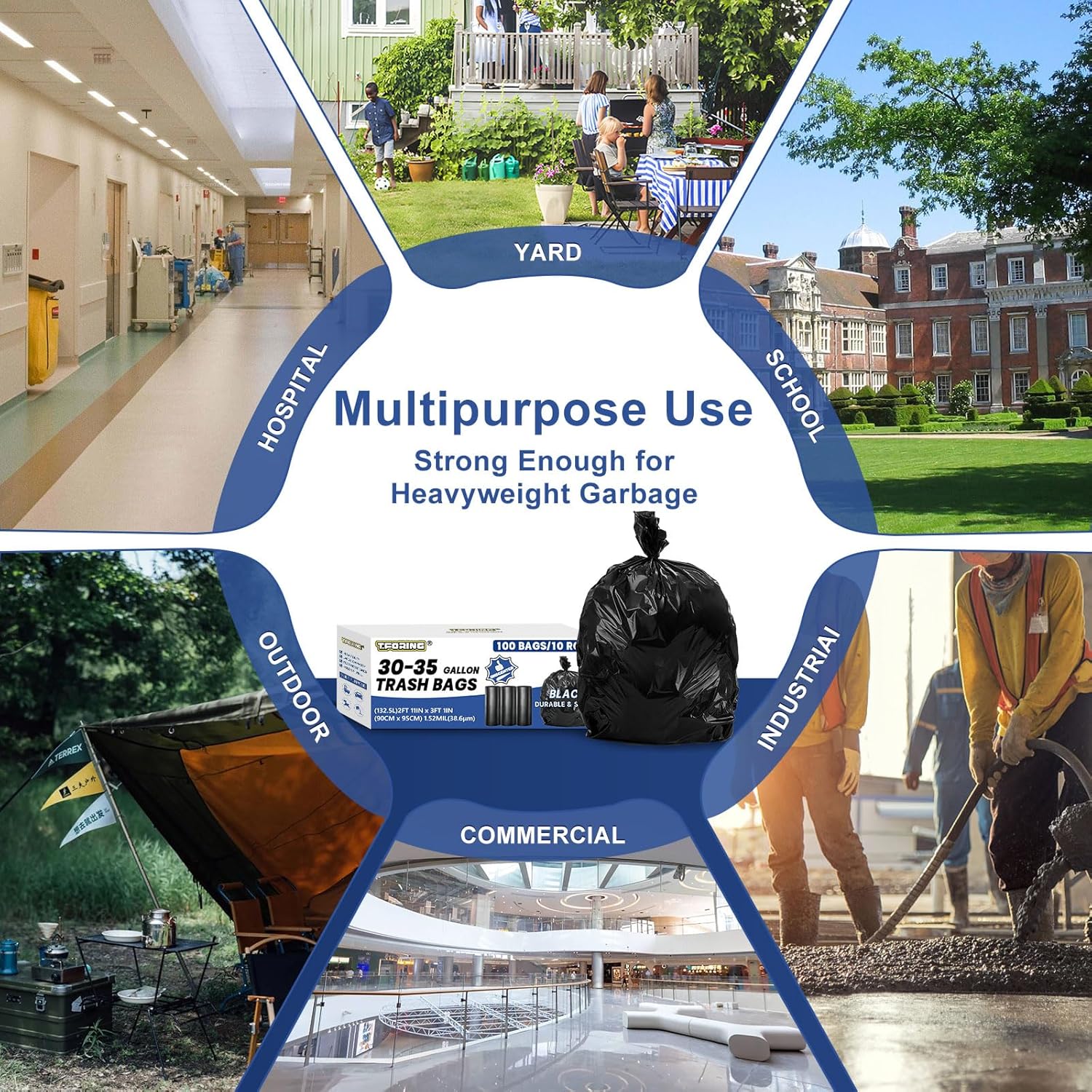 - ăMULTIPURPOSE BAGSăâIf you need a heavy-duty trash bag that can hold up to heavy garbage, or if you need to stuff it with yard waste, this large black garbage bag is the good choice for you. And the bags can also be used for commercial, industrial, construction purposes, etc.