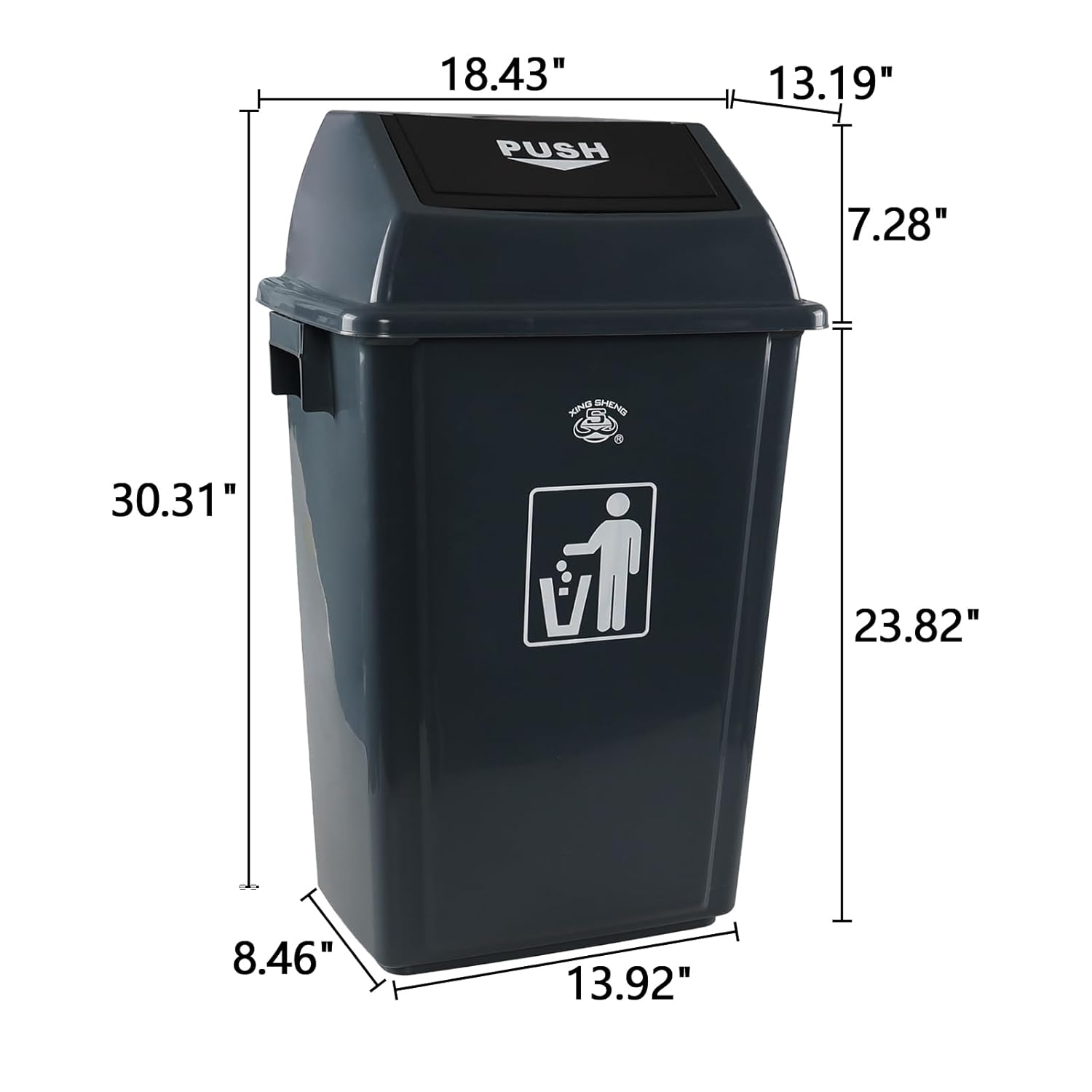- The shake cover design allows for one handed disposal of garbage. The detachable cover and large open bucket body make it easy to replace garbage bags, and the built-in handle is easy to move
