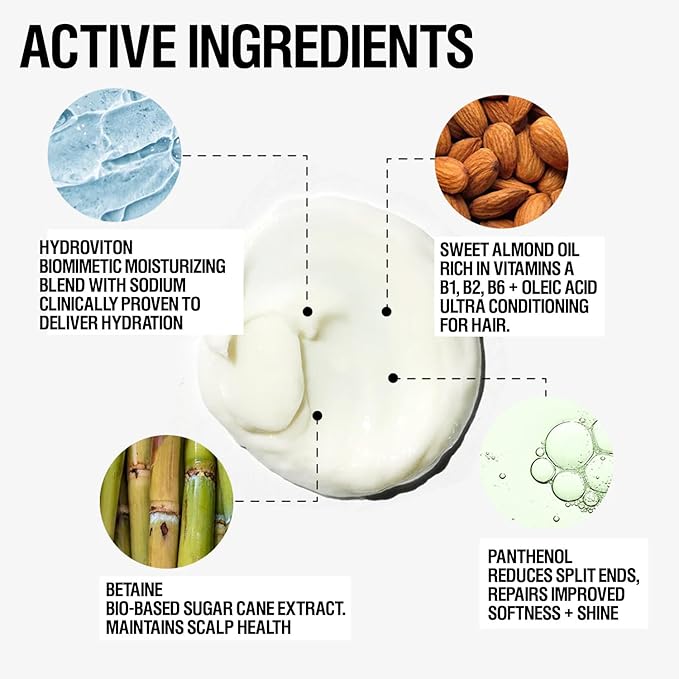 - HEALTHY. Moisturizing blend of Vitamin B5, Betaine, Hydroviton & Sweet Almond Oil. it helps to strengthen & hydrate strands whilst also improving scalp healthand reducing split ends