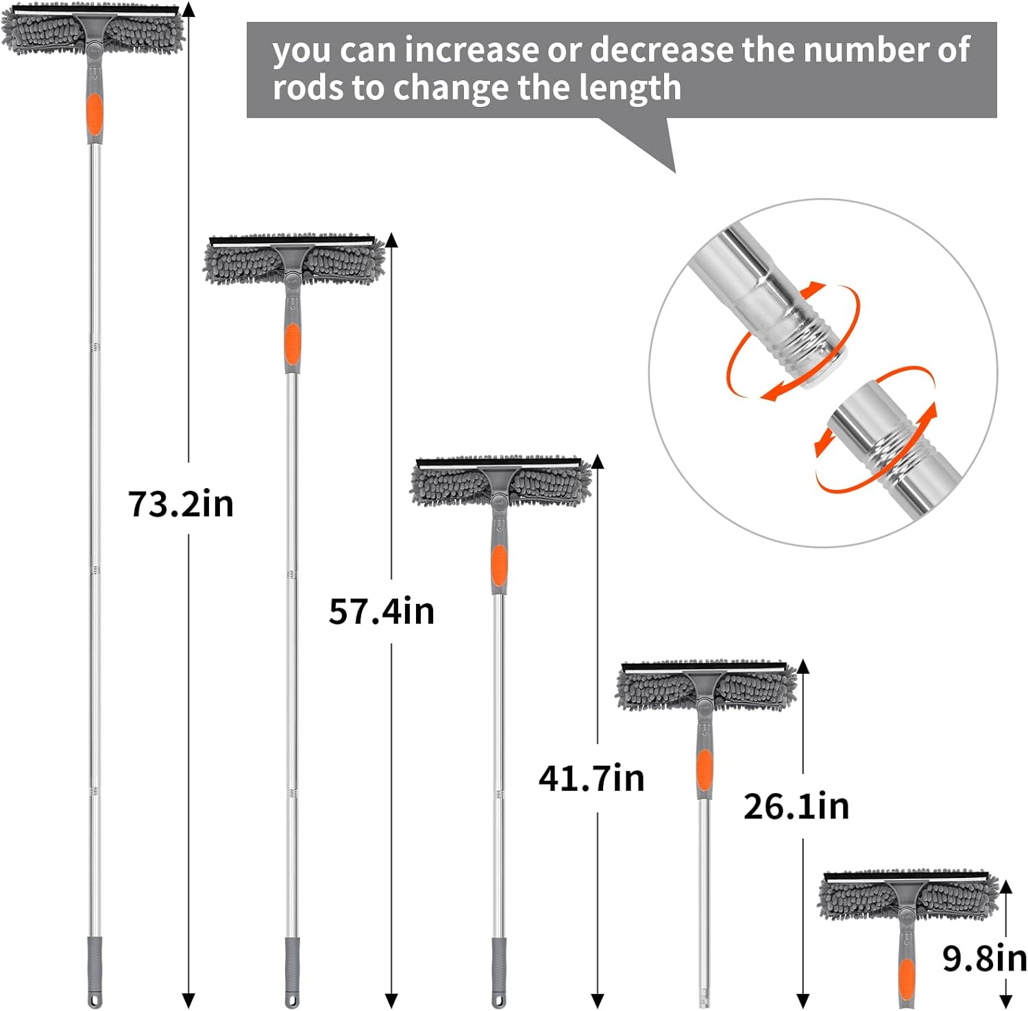 - LONG-POLE AND HANDHELD:You can adjust the length as much as you like. If you are cleaning small glass, you can just hold the window scraper in your hand; if you need to clean high windows, you can use the pole to connect, we give you four lengths of 20,30,40,50 inches for you to choose, which is enough for you to finish the window cleaning in your home.