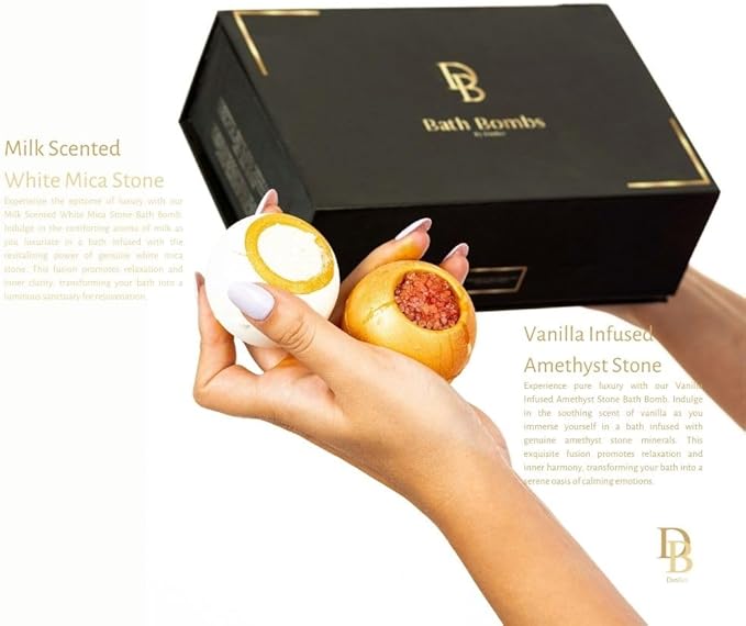 - 🖤 NATURAL, SKIN-LOVING INGREDIENTS – Made with non-toxic, natural, and organic ingredients, these bath bombs are safe and soothing for all skin types—including dry or sensitive skin. Infused with nourishing oils, botanical extracts, and mineral-rich salts, each one leaves your skin soft, hydrated, and delicately scented without irritation. Contains natural organic essential oils, salt, lavender, vanilla, milk fragrance.