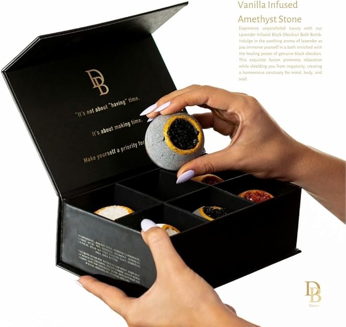 - 🖤 PERFECT GIFT FOR ANY OCCASION – Whether you're shopping for gifts for women, men, kids, or even a relaxing treat for yourself, the DinBer bath bomb gift set is an unforgettable surprise for your body. Ideal for birthdays, holidays, Mother’s Day, or just because, this elegantly wrapped set is ready to delight anyone who deserves a moment of calm and luxury. Wrapped in bubble pack and little box.