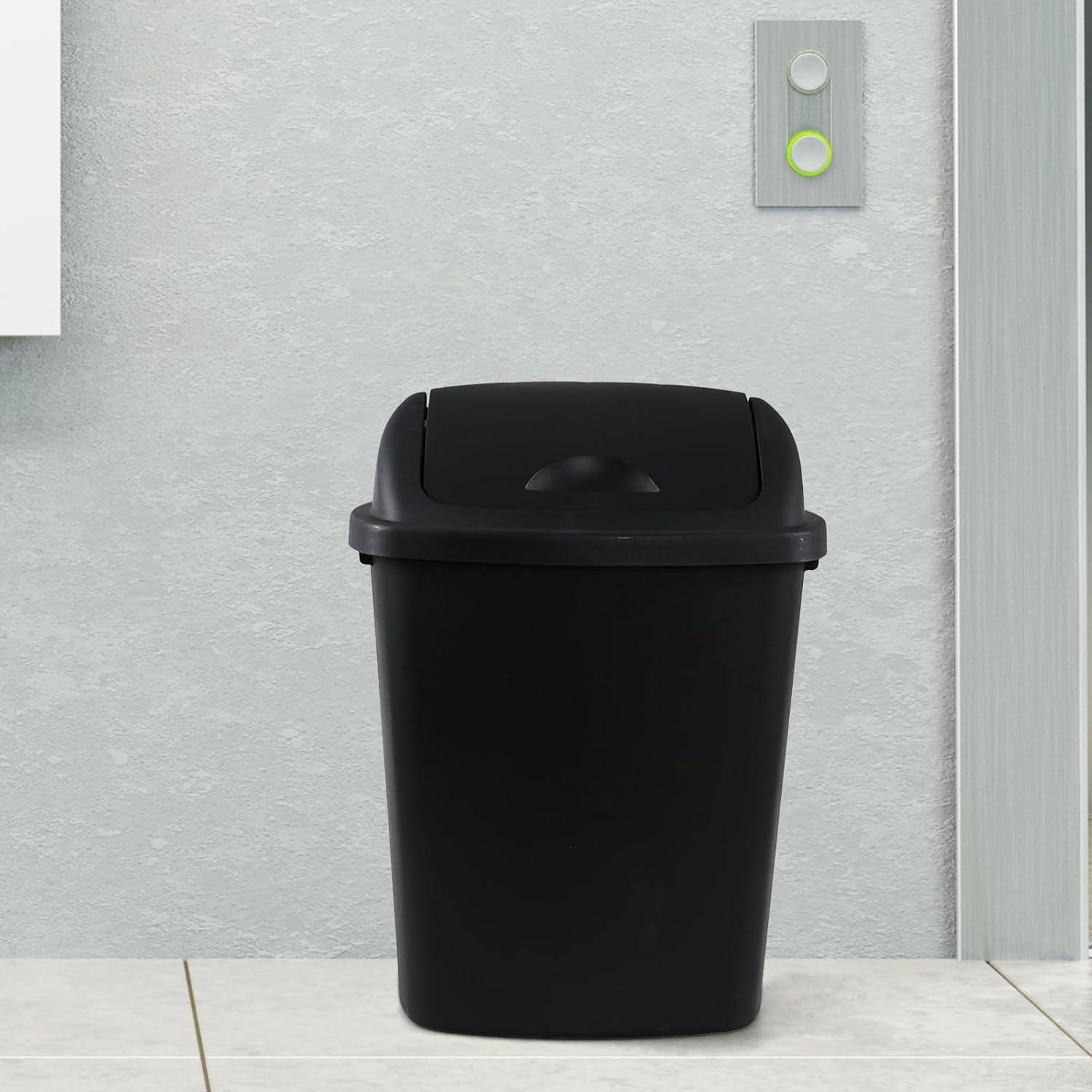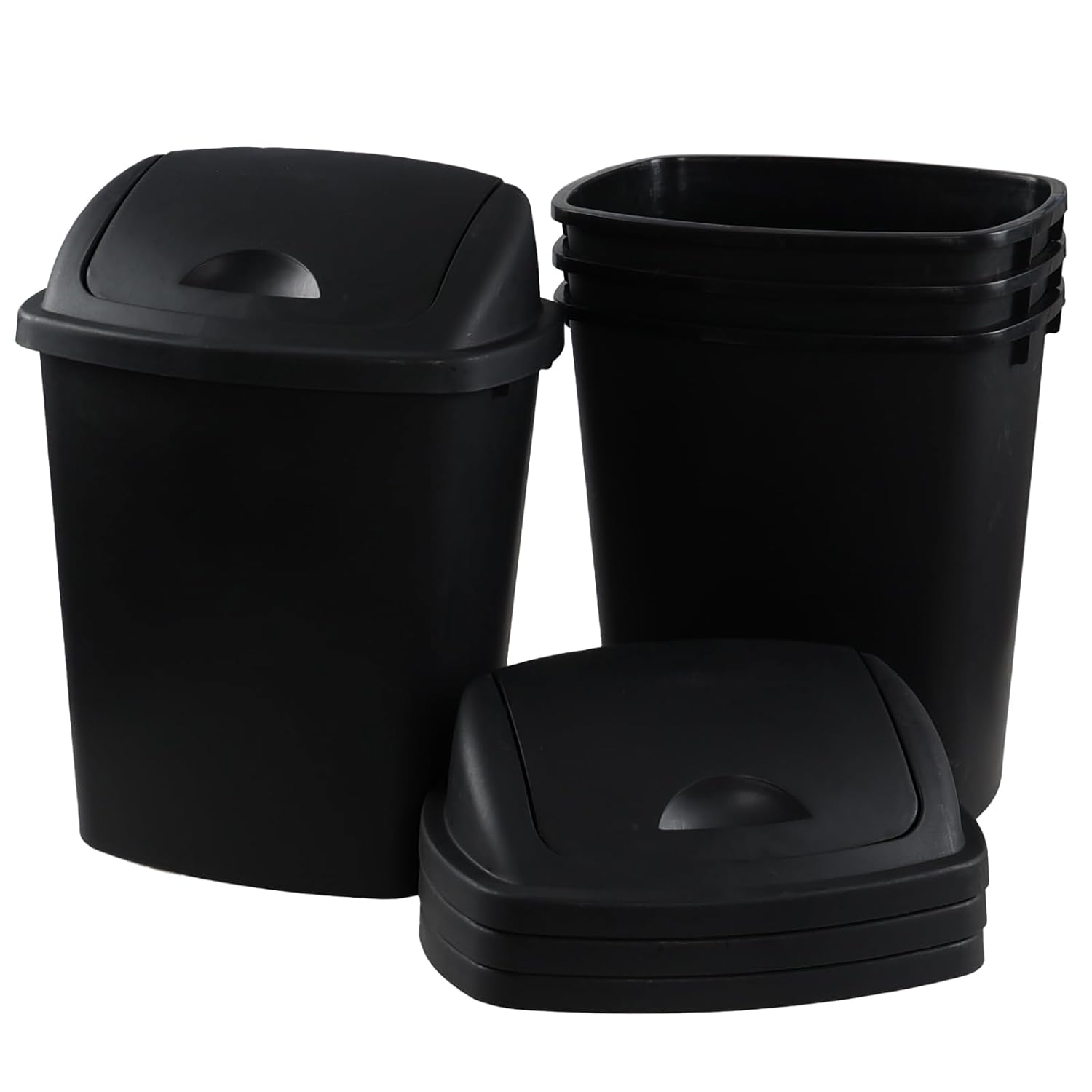 Bringer 6 Gallon Swing Top Trash Can, Plastic Garbage Can with Swing-Lid, Black, 4-Pack