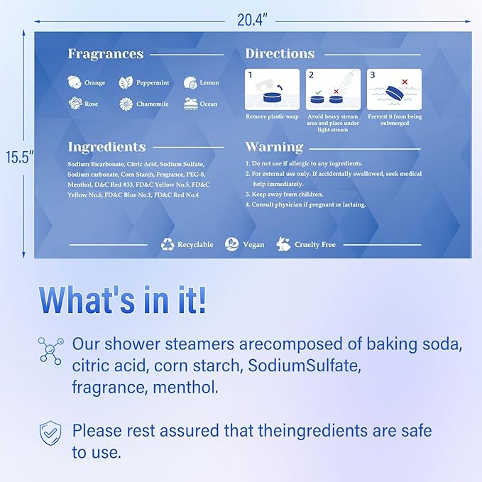 - Vision Enjoyment: Each shower tablet displays a unique cartoon shape matched with its natural scent. The bright colors and strong visual effects add a touch of fun to your shower