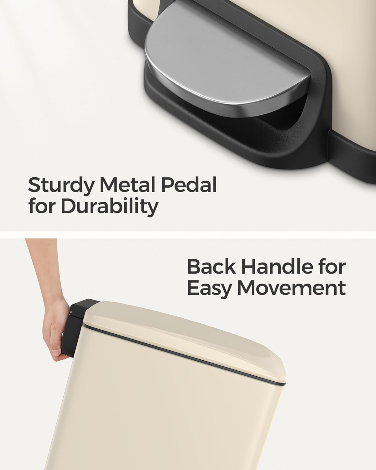 - [Easy Cleaning & Modern Design] This stainless steel trash can is rust-resistant and easy to clean with a damp cloth. This trash bin has a sand beige finish with a sleek modern look that easily matches any decor