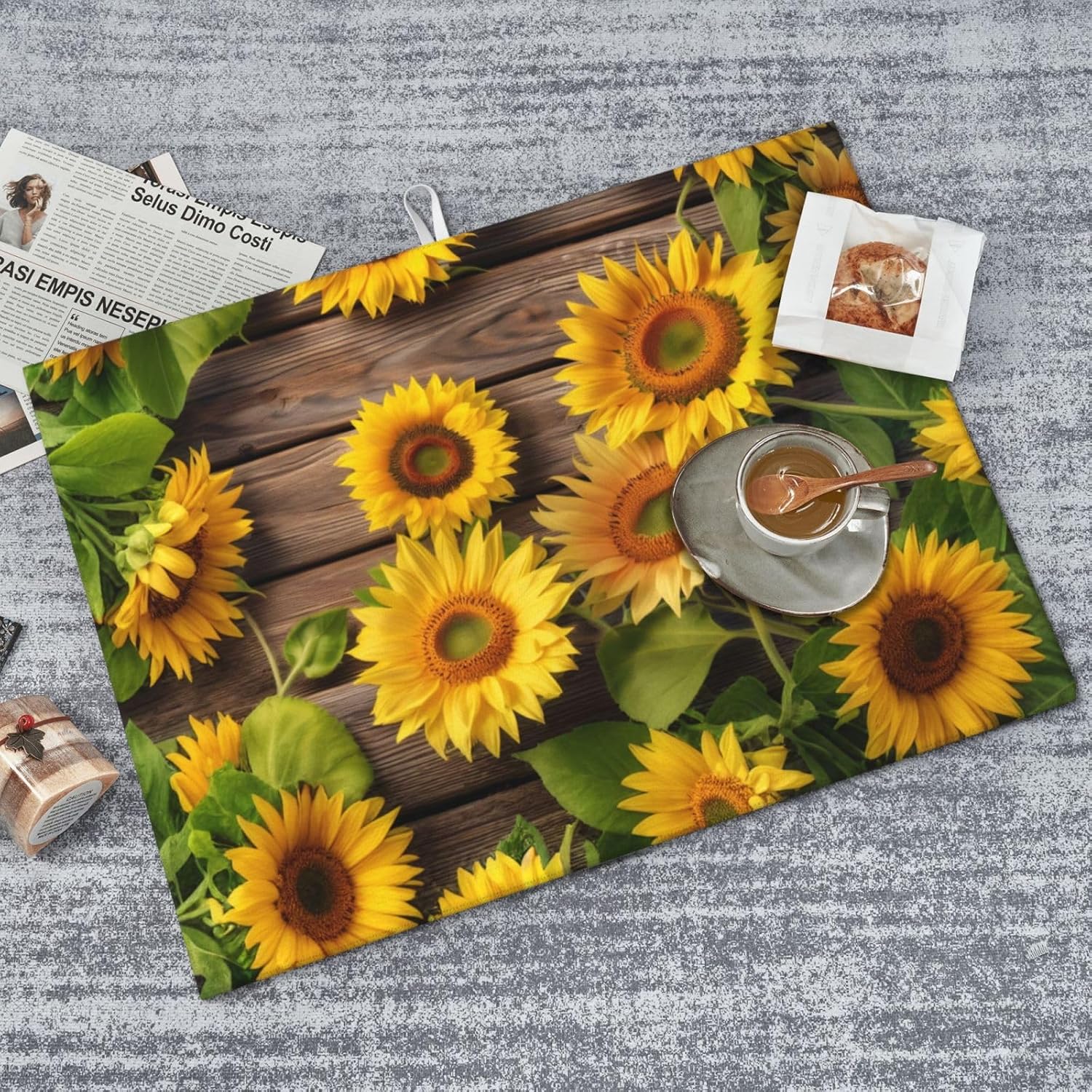 Sunflower Dish Drying Mat for Kitchen Counter Protector and Decoration Super Absorbent Double Sided Microfiber Coffee Bar Mat Dish Drainer Mat Fast Dry Pad Reusable Extra Large 18"x24" inches