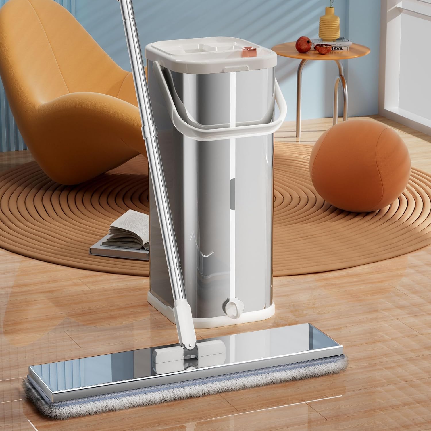Stainless Steel Mop and Bucket Set with Wringer, Easy-to-use Flat Mop with Separate Dirty Water System, Deep-Cleaning Mops for Floors, Versatile Mops for Walls