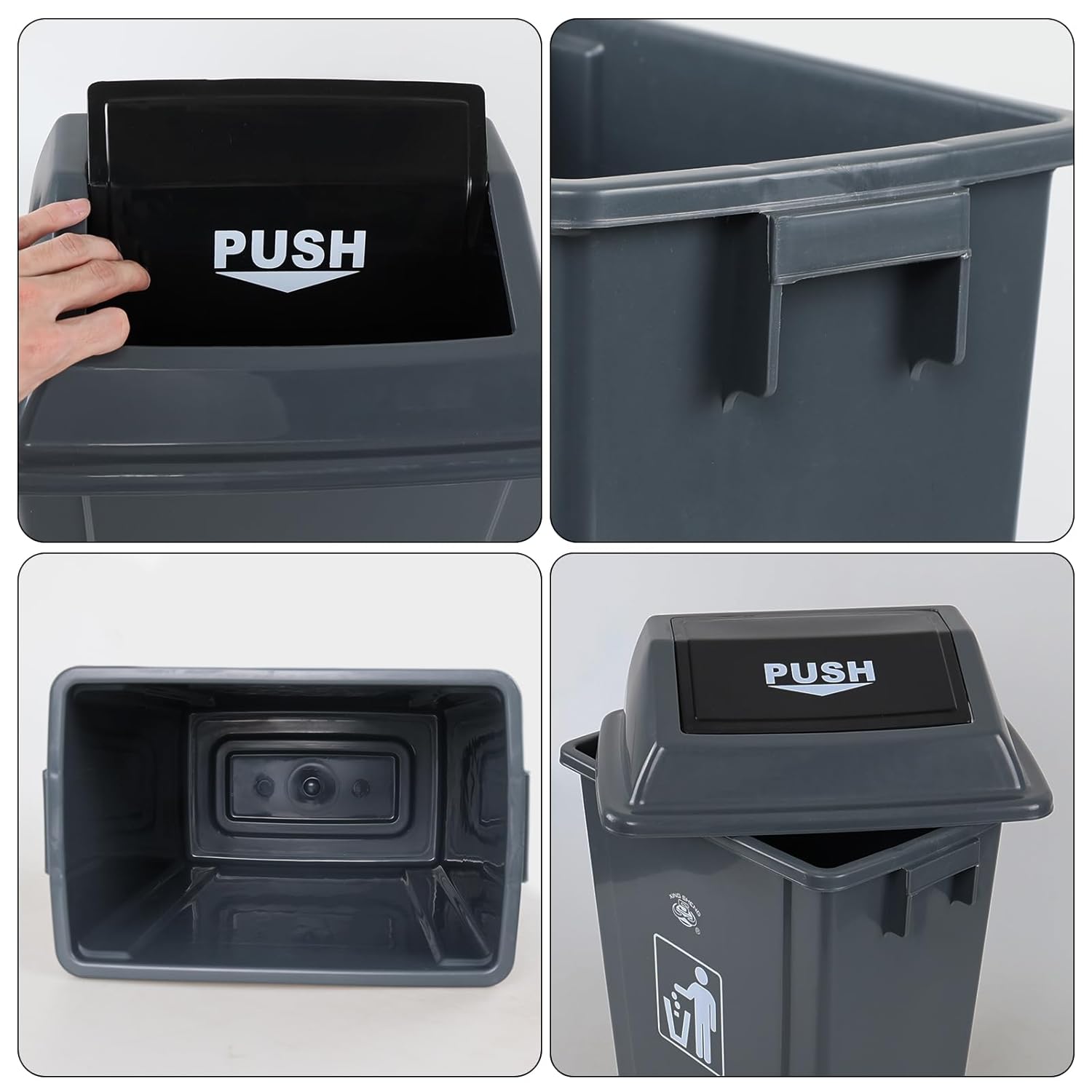 - Package contains 4 pack 6 gallon plastic swing lid kitchen trash can, which with dark gray bin's body and black swing top lid