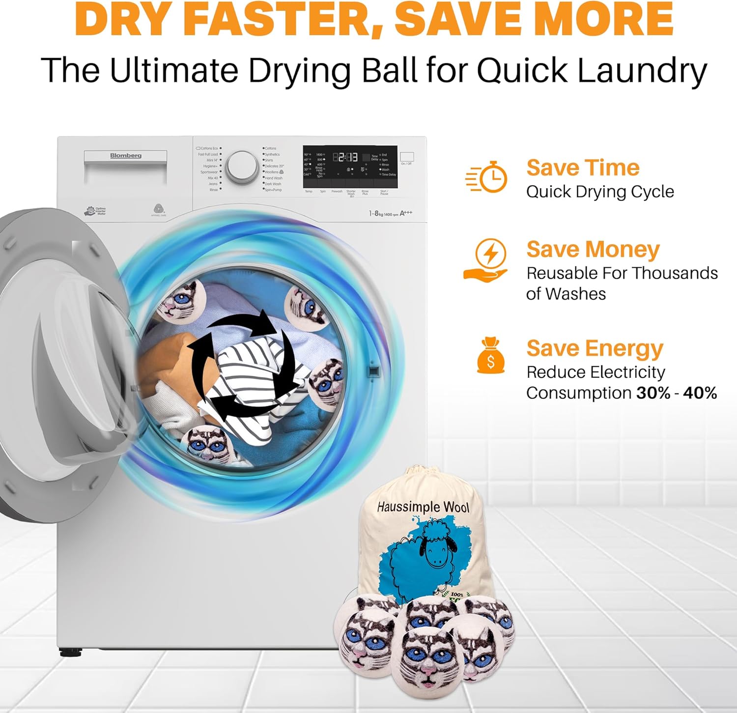 - Reduced Drying Time: Wool dryer balls help to separate and aerate clothes, allowing for better air circulation. This can lead to up to 30-40% faster drying times, which saves energy and reduces electricity costs.
