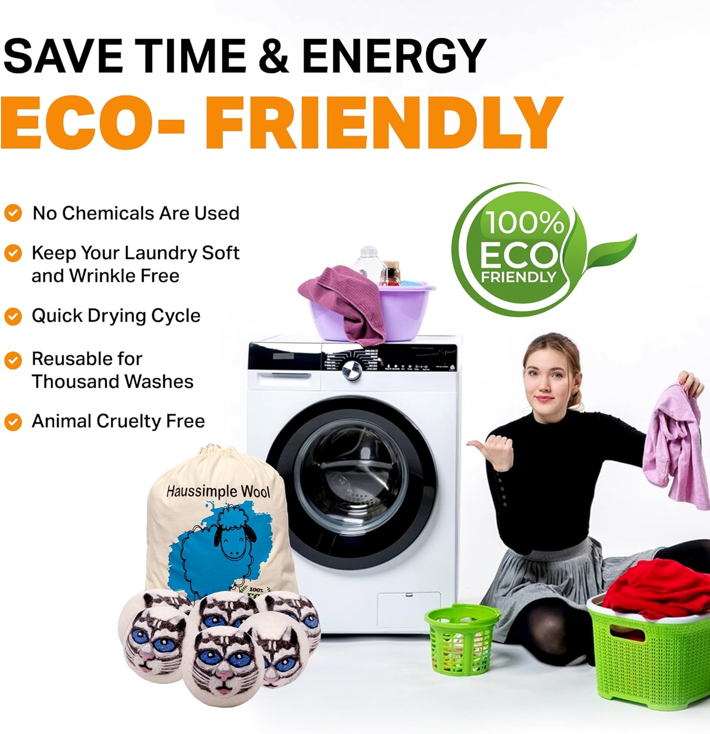 - Eco-Friendly and Reusable: Wool dryer balls are reusable, lasting for hundreds of loads. Unlike single-use dryer sheets, they generate less waste and are a more sustainable choice.