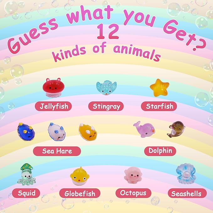 - 🎁【With Surprise Toys Inside】- Each bath bombs is filled with fun with a toy inside! After 3-5 minutes of colorful bubble bath, the surprise toy hidden inside will slowly float. Including 12 different sea animals toys, 12 different scents, bring different surprises to your child's every bath. Kids have a fun toy to remember that it is sure to be one of their favorite gifts