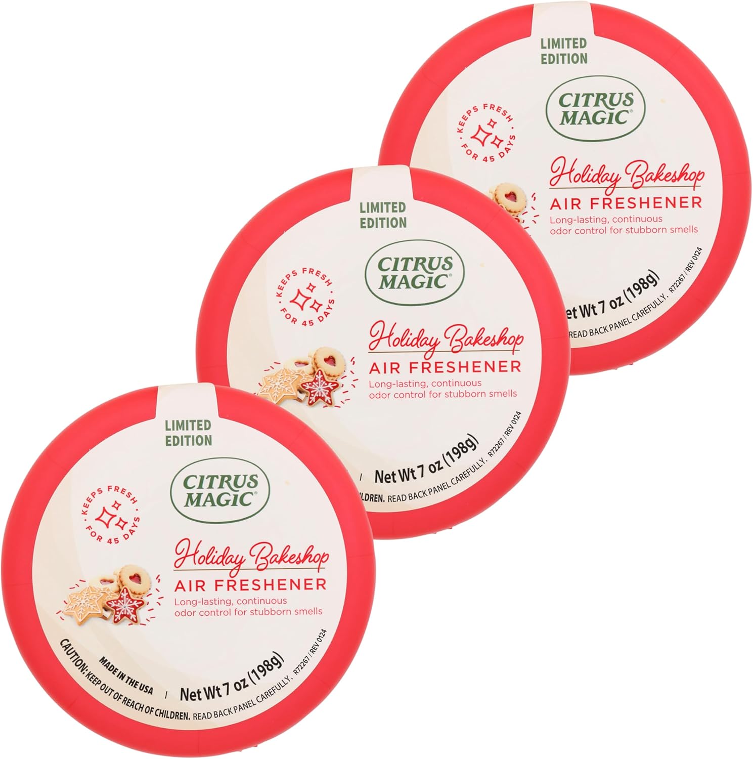 Citrus Magic Holiday Odor Absorbing Solid Air Freshener, Holiday Bakeshop, 7-Ounce, Pack of 3