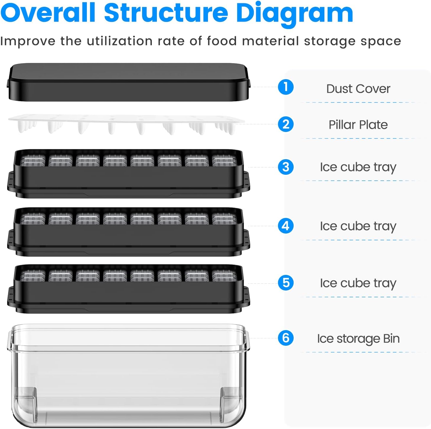 - Food Grade Material & BPA Free:This ice trays for freezer with lid and bin are made of food grade PP material, which is safe and can be frozen and used repeatedly for a long time.The ice cube tray is NOT DISHWASHER SAFE