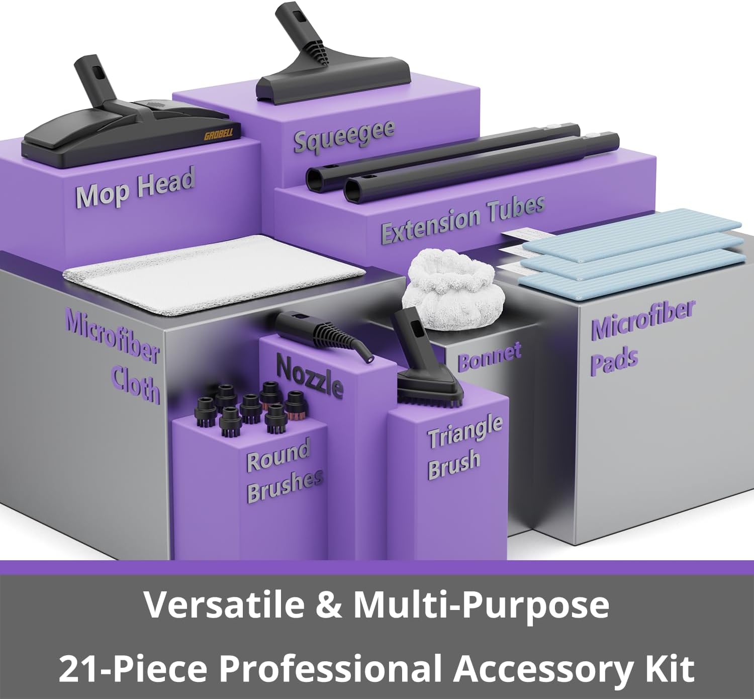 Steam Cleaner: 1650W, Fast 50-Sec Heat-Up-21-Piece Kit Refill Anytime-No Cooling-Detachable Hose Steamer Mop for Home Use Car Bed Furniture Bathroom Tile Grout Floor Cleaning And More Pink