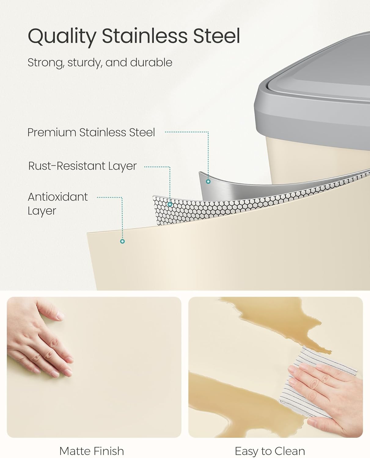 SONGMICS Kitchen Trash Can, 18-Gallon Stainless Steel Garbage Can, with Stay-Open Lid and Step-on Pedal, Soft Closure, Tall, Large and Space-Saving, Sand Beige and Dove Gray ULTB520A01
