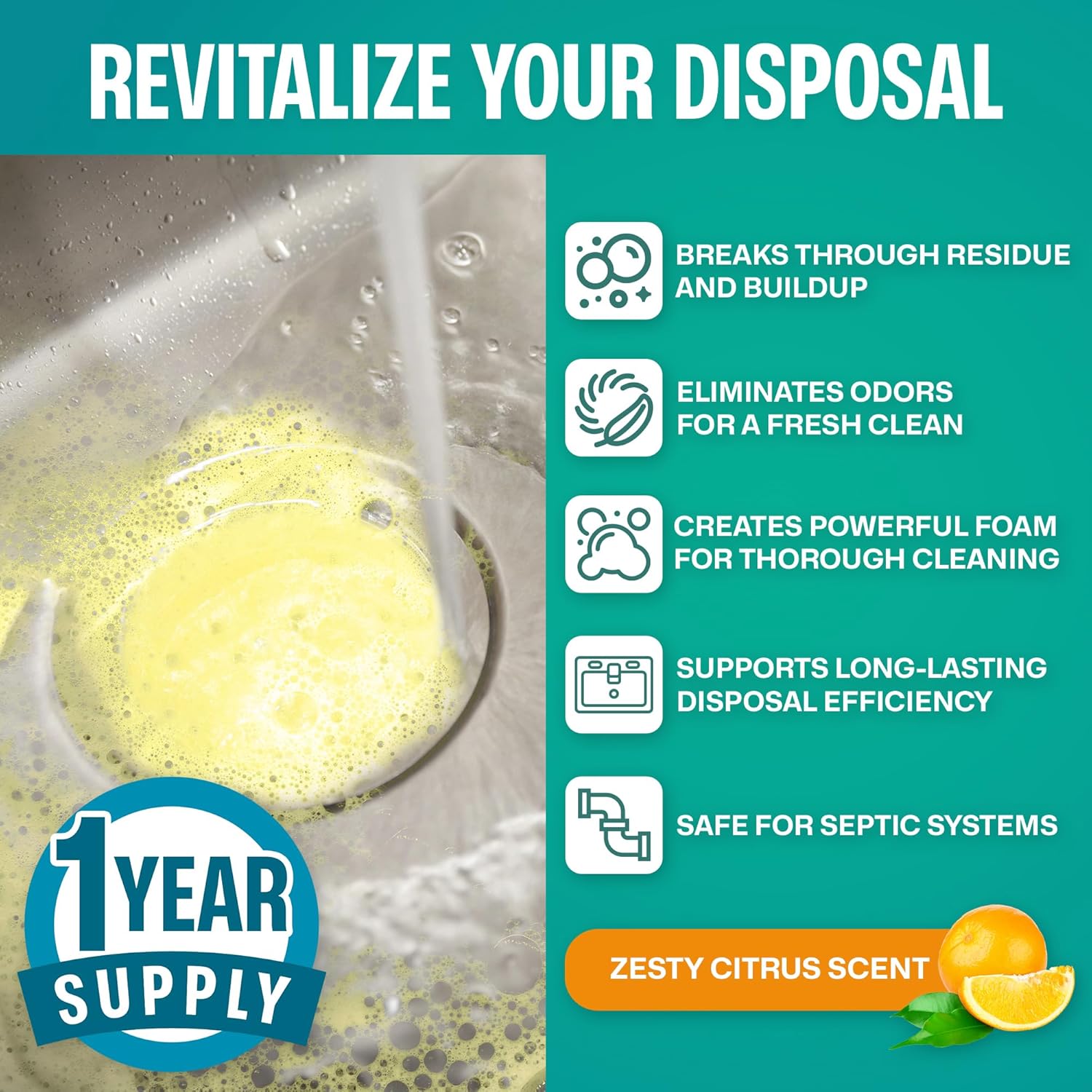 • Long-Lasting: Includes 24 powerful garbage disposal cleaner tablets, good for one year supply. Perfect for maintaining a clean and odor-free kitchen.