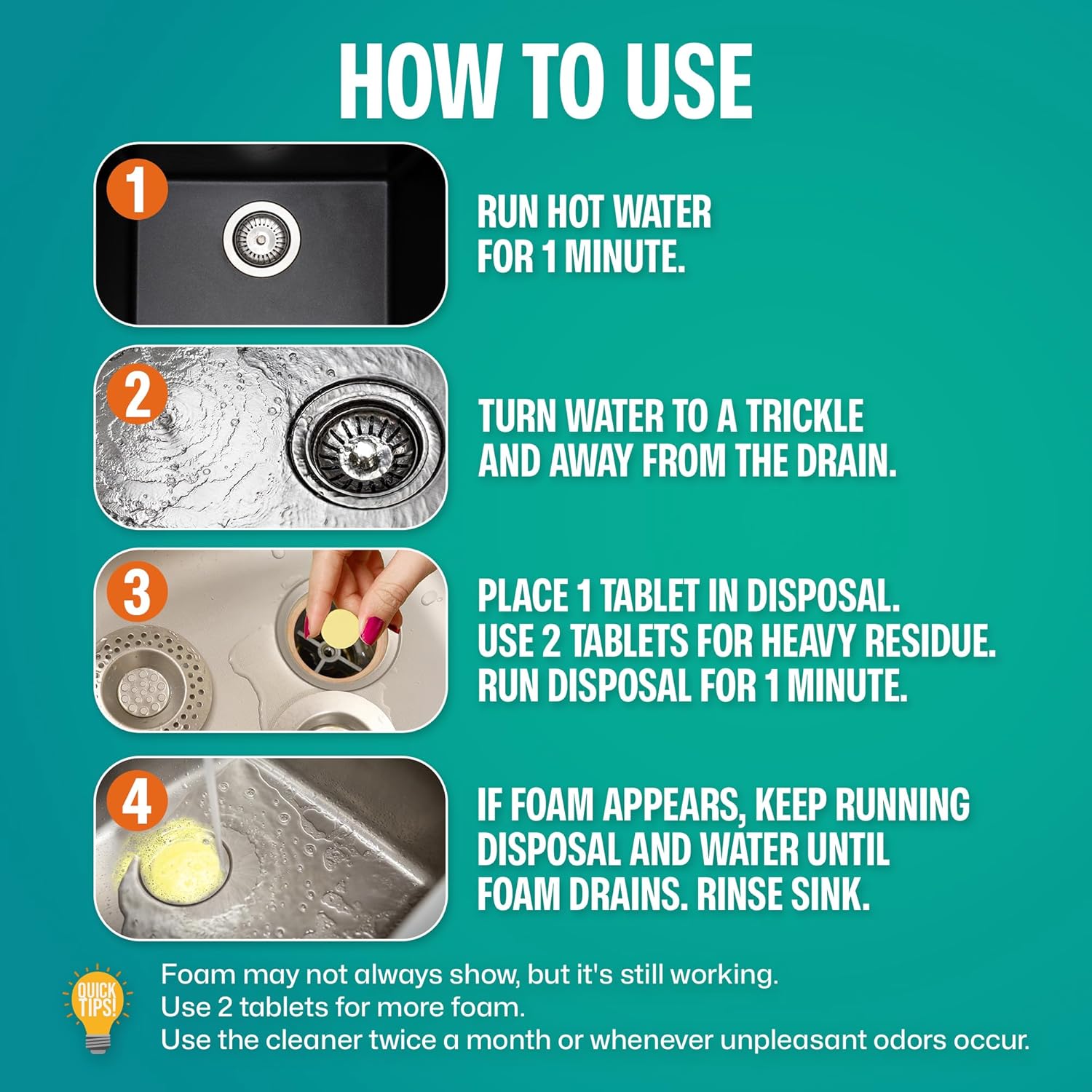 • Easy to Use: Simple drop the tablet into the disposal for quick and effective cleaning. Perfect as garbage cleaner pods alternatives and ideal for kitchen sink deodorizer for smell and odors.