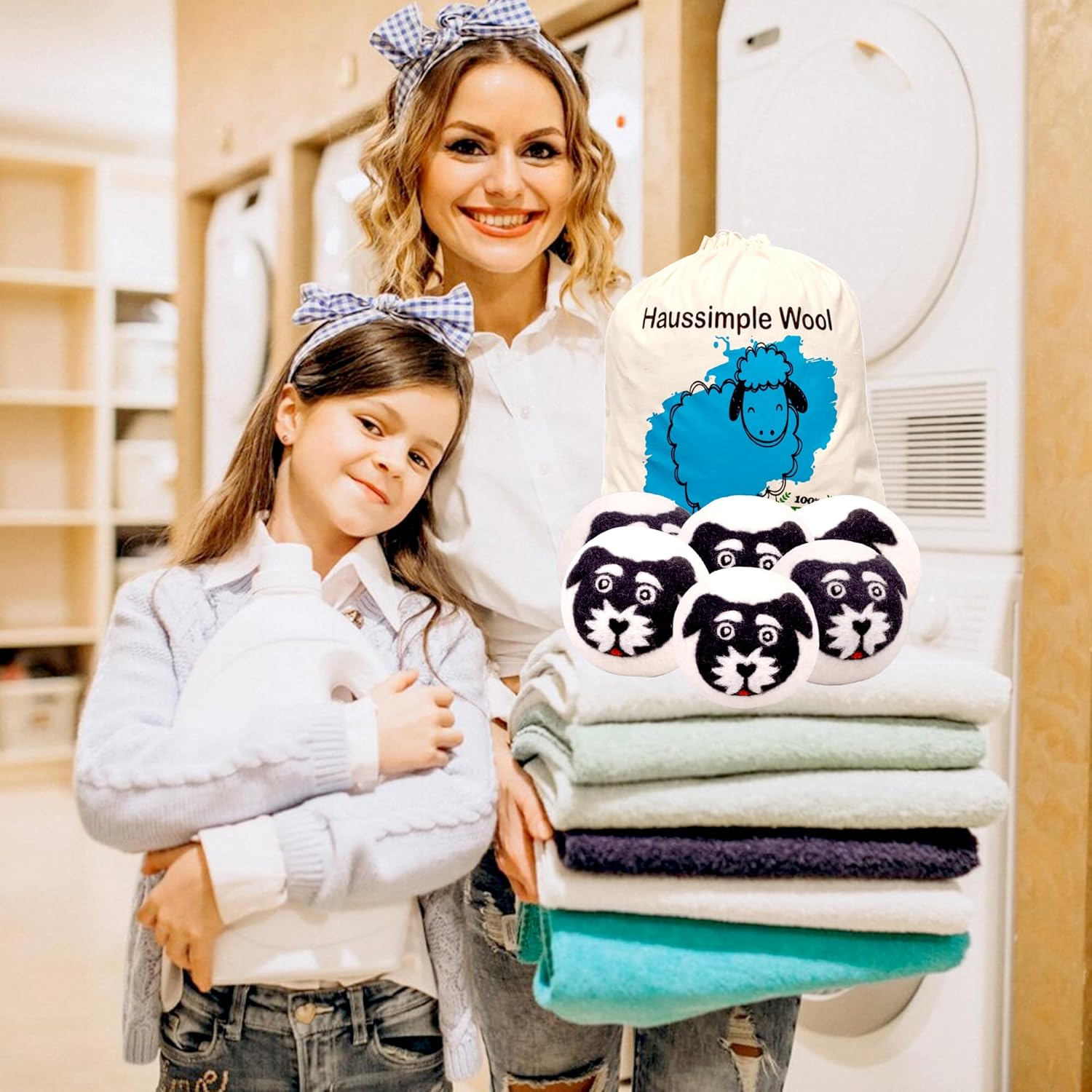 Wool Dryer Balls Organic Felt 6 Pack Laundry Fabric Softener, Extra Large Reusable Handmade Natural Sheep Wool Lint Wrinkle Free Anti Static Baby Safe (Black White Dog)
