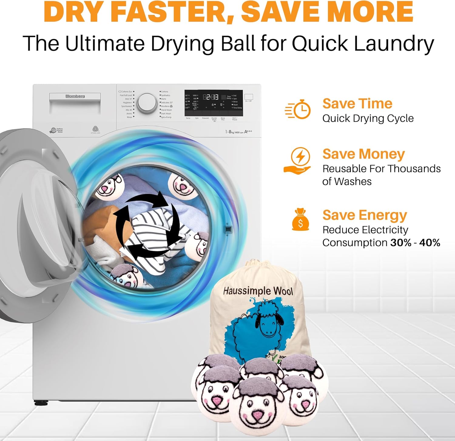 - Reduced Drying Time: Wool dryer balls help to separate and aerate clothes, allowing for better air circulation. This can lead to up to 30-40% faster drying times, which saves energy and reduces electricity costs.