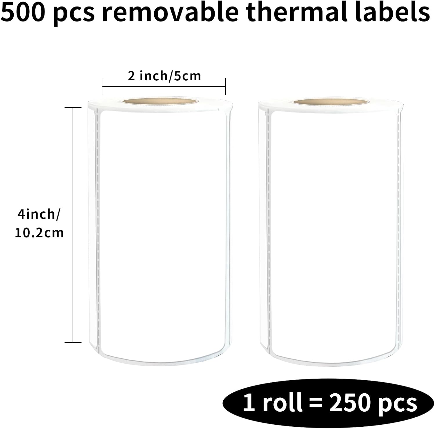 2×4 Inch White Removable Thermal Labels,Waterproof Thermal Label (250 Sheets per Roll,2 Rolls)