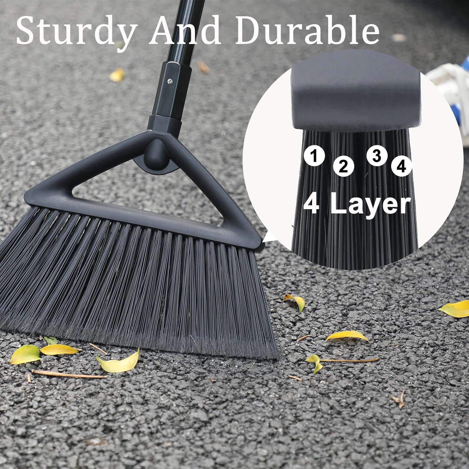 4PCS Heavy Duty Angle Broom, Long Pole Brooms for Indoor, Outdoor Sweeping, Kitchen to Courtyard, Black