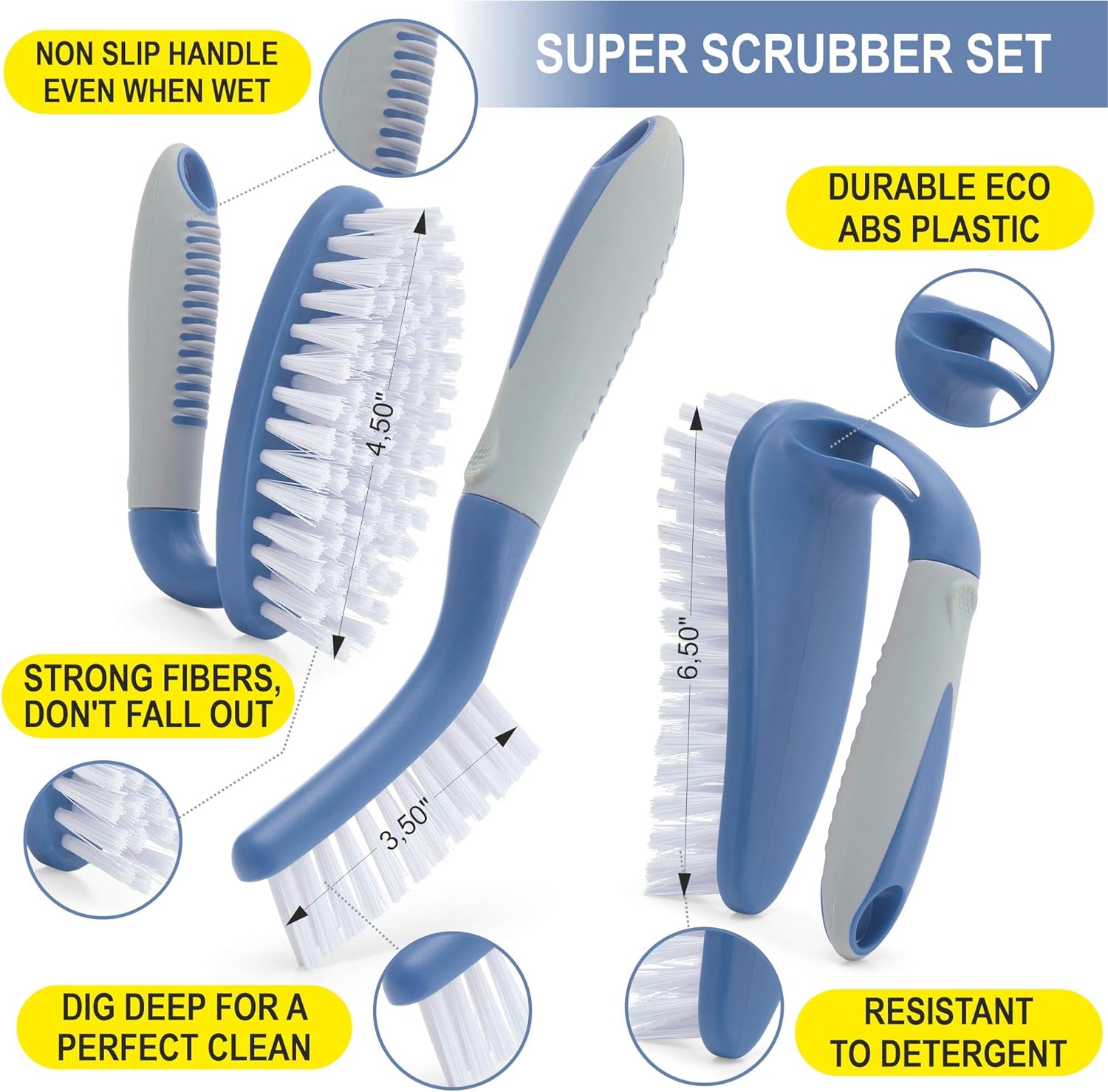 - Set of 6 Brush for Any Job: The Power Scrub brush is actually a really powerful scrubbing brush thatβs sure to become one of your favorite bits of cleaning kit. The Small Scrub Brush can reach into difficult areas and leaves tiles looking like new with minimal effort. It can be used to clean around taps leaving them sparkling and free from smears and marks. Uniquely shaped bristles of the Grout Brush makes cleaning grout and corners fast and easy. Tough bristles scrub away grime and soap scum.