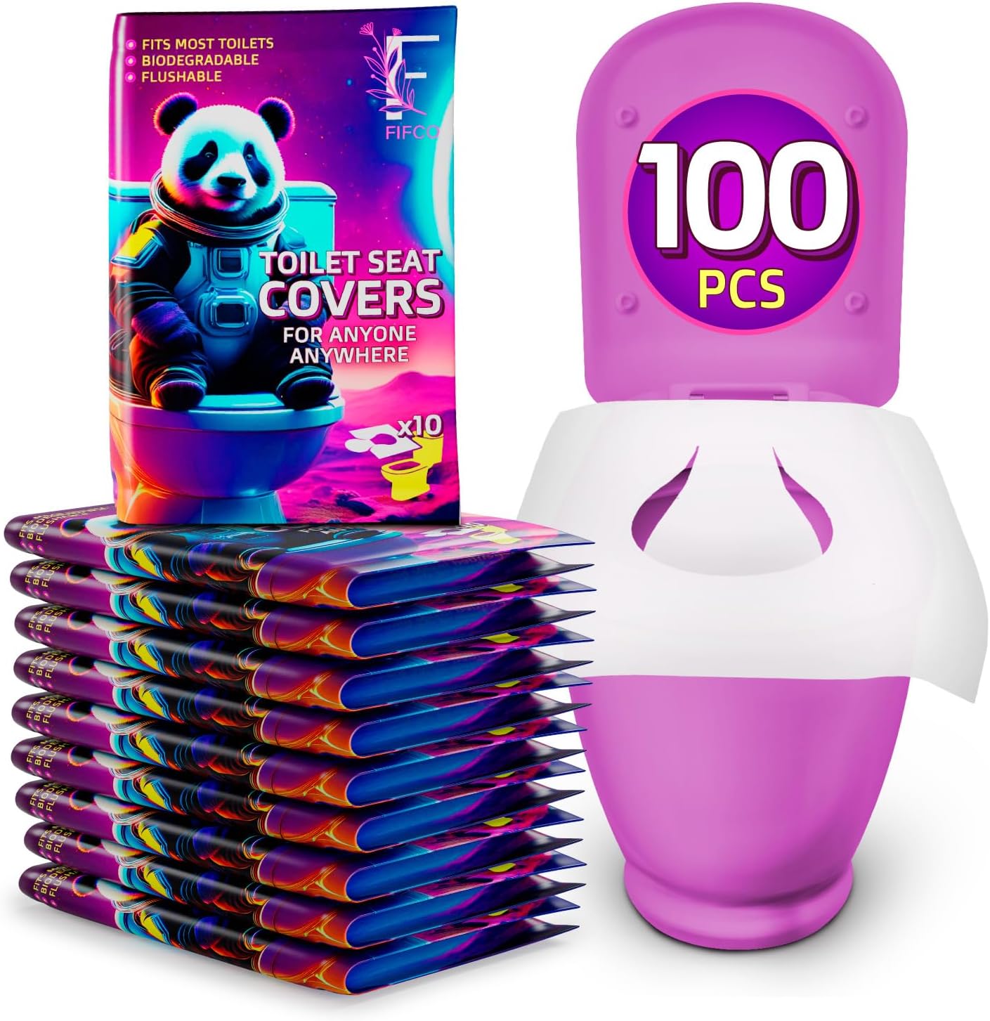 100 Pcs Disposable Toilet Seat Cover - Biodegradable and Flushable Toilet Seat Liners for Public Toilets | Compact One Size Fits All Travel Essentials Toiletries Covers | FIFCO