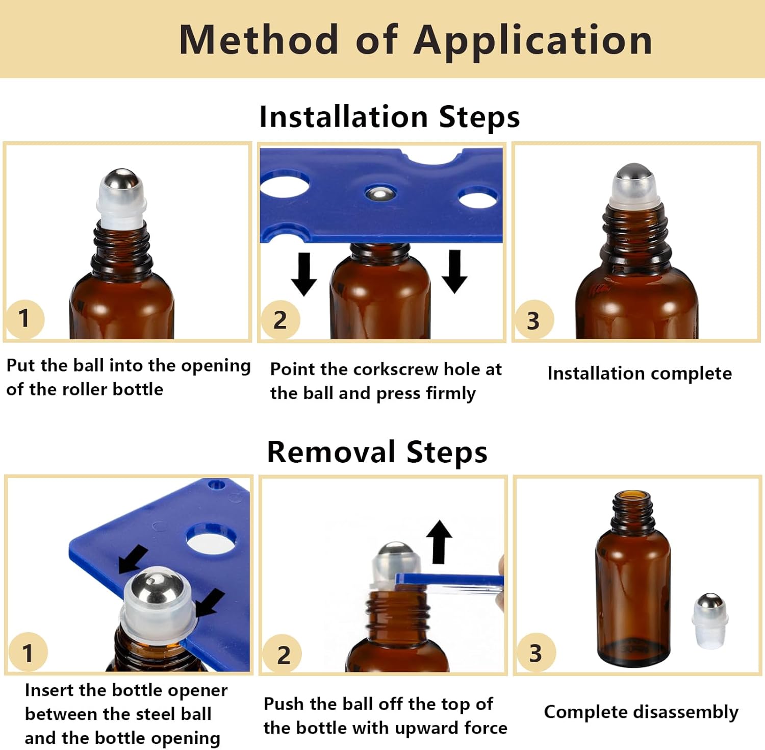 - Package Includes: We offered 4pcs empty roll on bottles, 1pcs opener and funnel are provided to open and fill essential oil easily, we also provided a 2ml dropper for more accurate measurement of the dripped liquid, using with our roller ball container for essential oils,you can enjoy every moment during massage or beauty salons