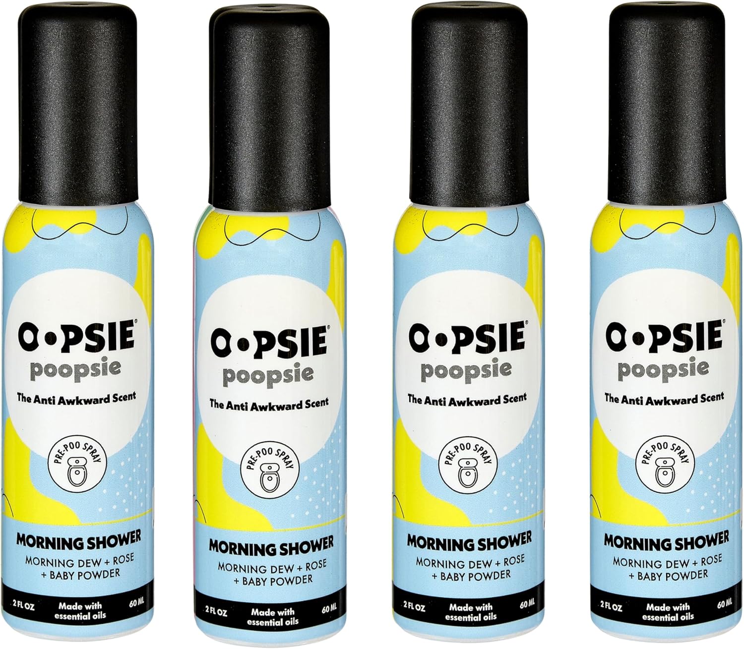 OOPSIE POOPSIE - Morning Shower - Before & After You Go Toilet Spray 2oz - Portable Odor Eliminator - 4 Pack