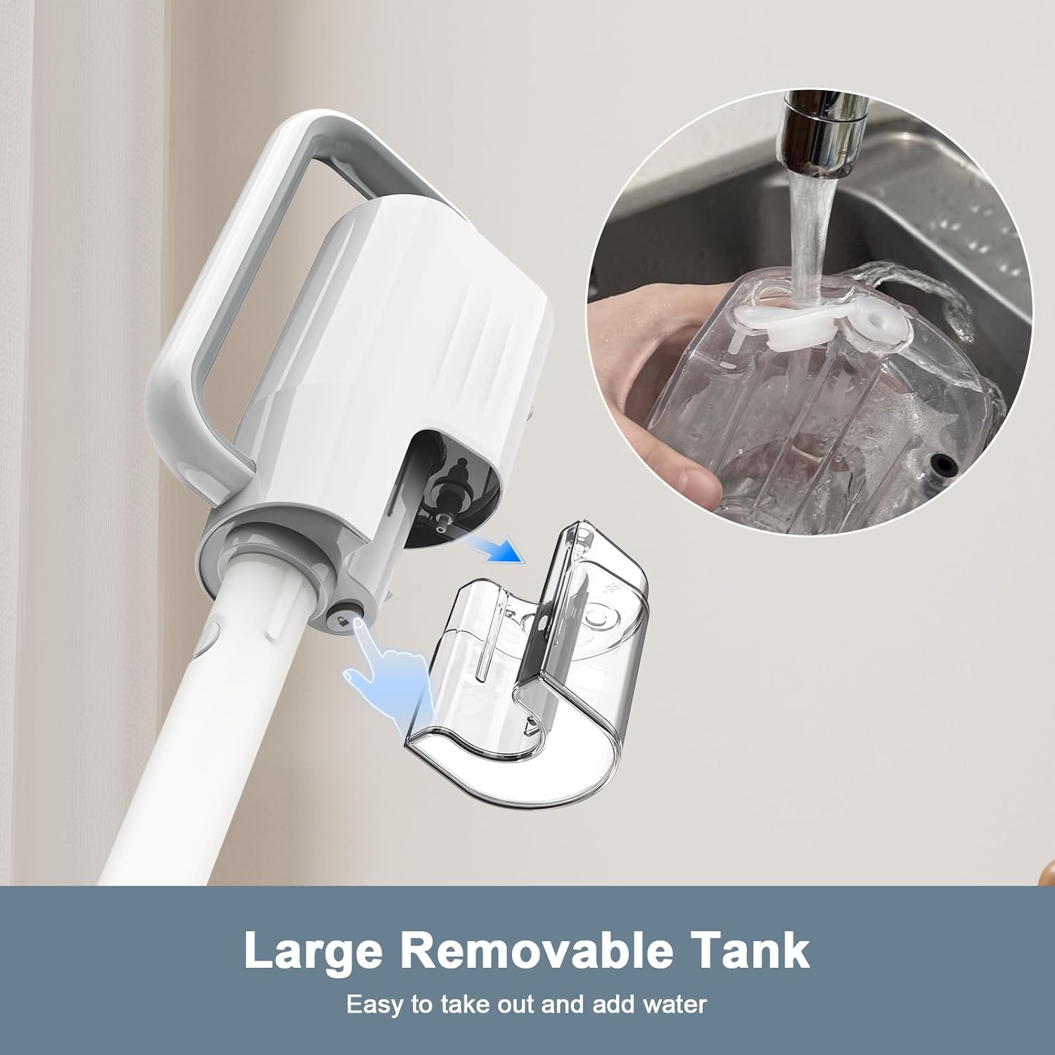 - 【Detachable and Washable Part Steamer】 ✅The water tank upgrades to capacity of nearly 400ML, reducing the hassle of frequent refills, while the easily detachable tank simplifies the refilling process, eliminating the worries of water leaks. After cleaning, the mop pads are machine washable, and an extra set is provided for your convenience.