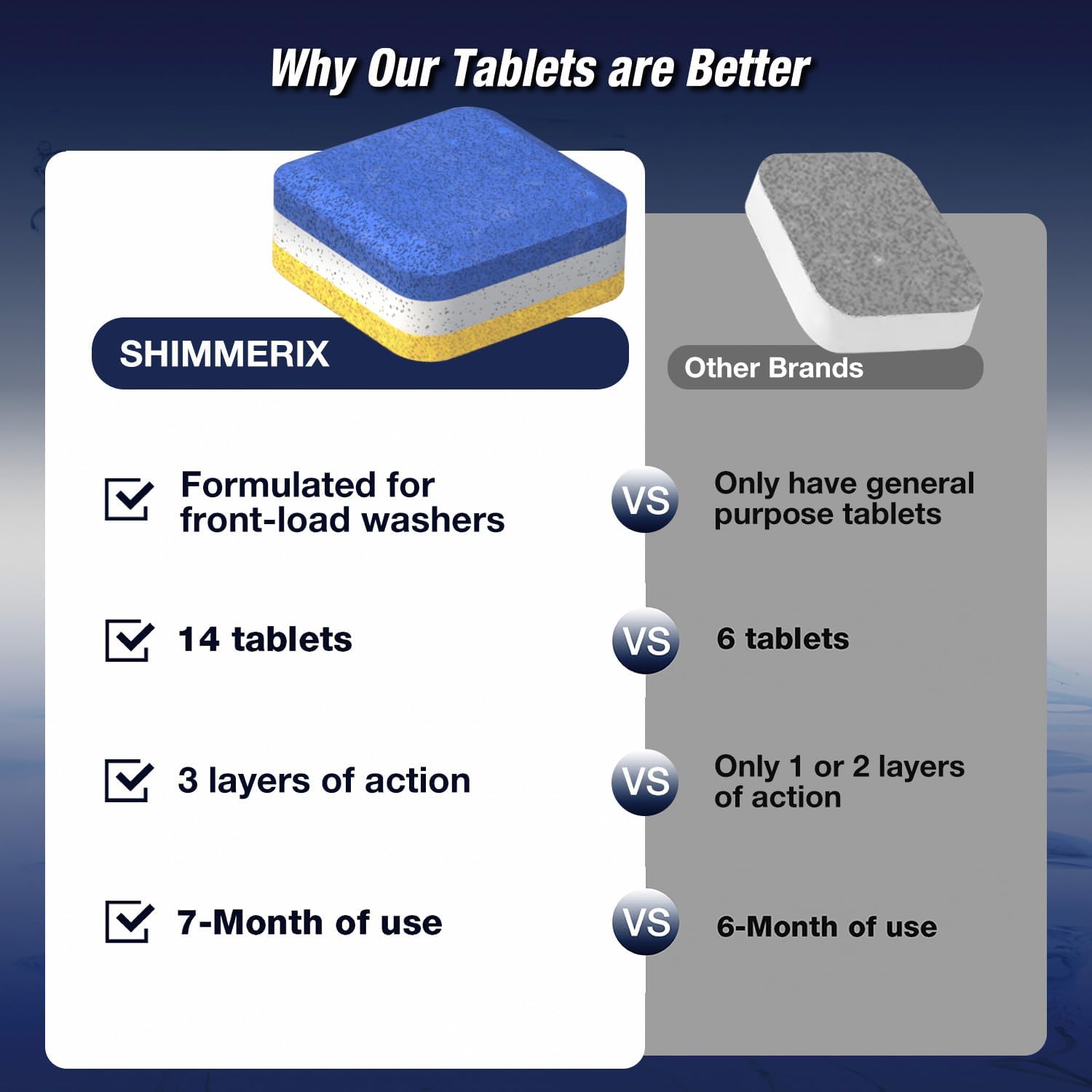 Washing Machine Cleaner Tablets 14 Pack for HE Front Load - Eco Friendly Washer Cleaning Tablets Formula - Pets Hair & Smell Solution - Septic Safe Descale Deodorize Protect - 1 Plus Year Supply