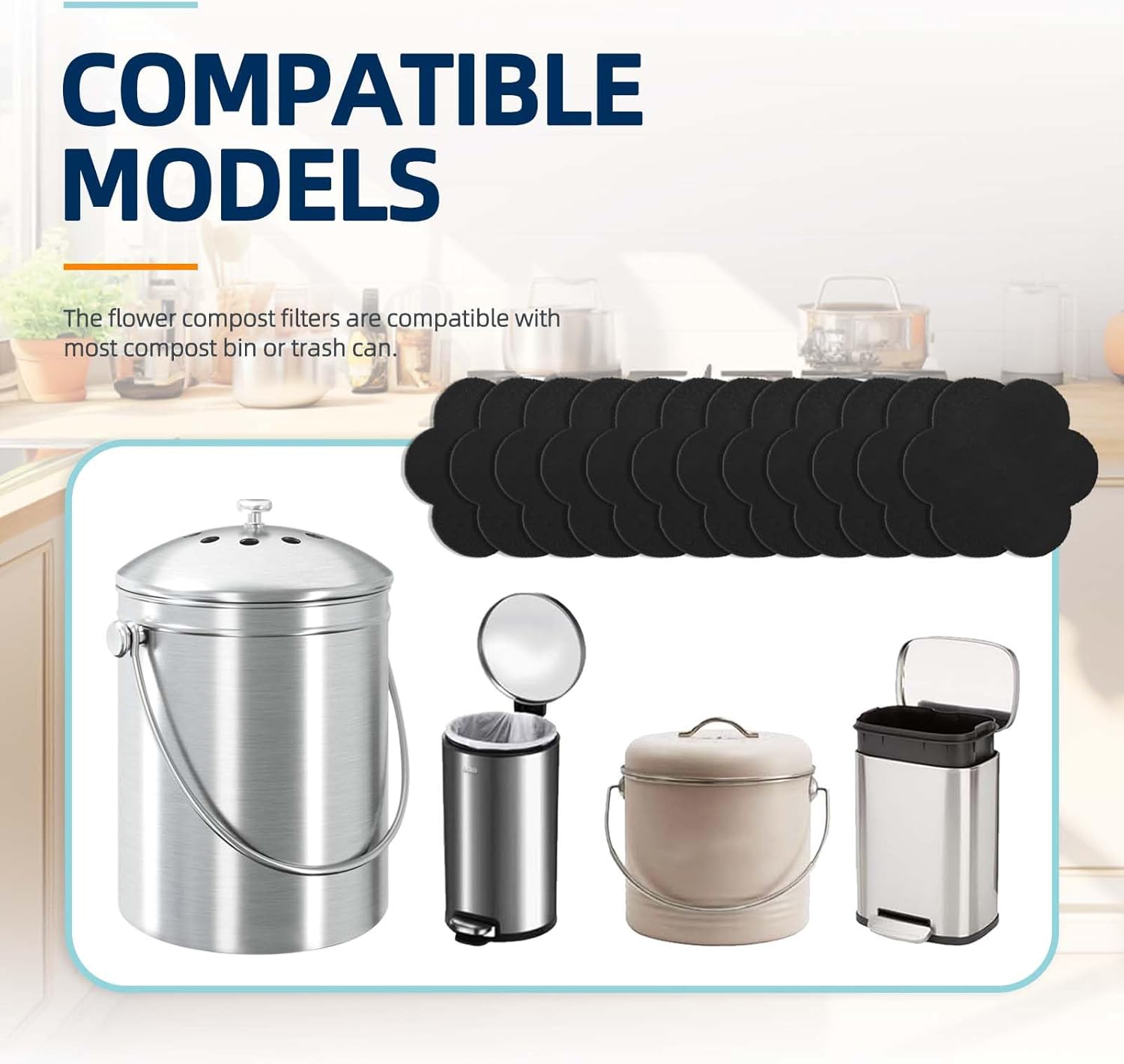 - [Environmental protection and durability] : These replacements garbage can activated carbon filters for countertop bin are made of high-quality activated carbon, 100 % biodegradable, which can ensure good absorption and filtration and help effectively suppress odor.
