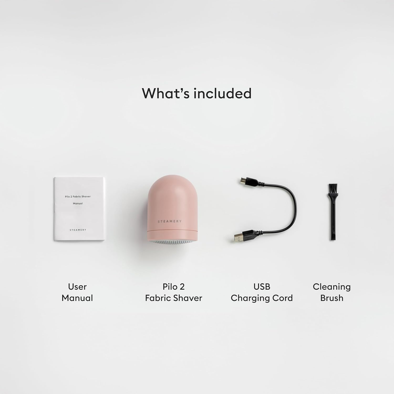 Steamery Fabric Shaver Pilo 2, Removes Lint and Pilling from Clothes and Textiles, Rechargeable Lint Remover with USB, Pink