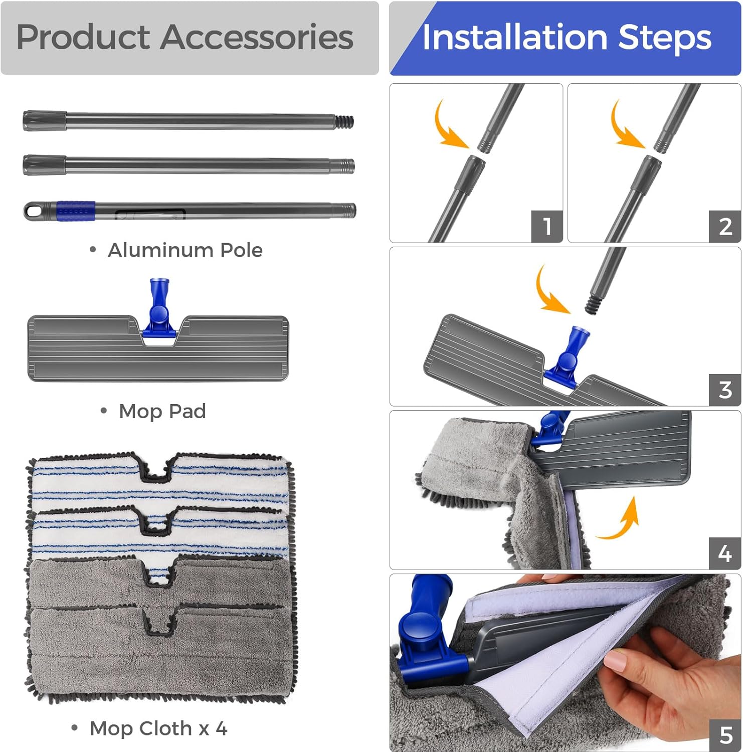 • [Efficient Deep Cleaning] The microfiber mop for floor cleaning comes with a 17-inch double-sided soft microfiber dust mop pad and a practical scraper.And the flat mop and scraper can quickly and effectively remove dust, pet hair, and debris from the floor and give you a clean and tidy floor.