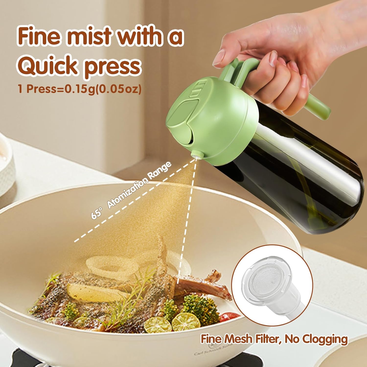 - ăDual-Function Design & Multi-Purposeă: Oil mister spray bottle for cooking offers the convenience of both spraying and pouring oil, suitable for a wide range of food preparation processes such as salad dressing, griddle, roasting, grilling