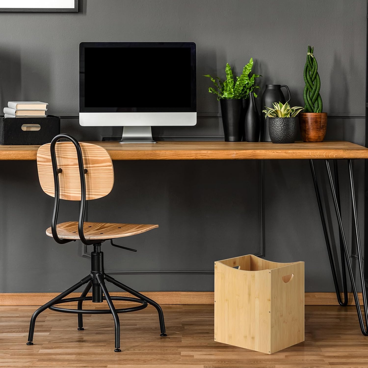MOOACE Small Wastebaskets 2 Pack, 5 Gallon Trash Can with Handles, Rectangular Waste Baskets Bamboo Garbage Can for Bathroom Kitchen Living Room Office Decorative Under Counter