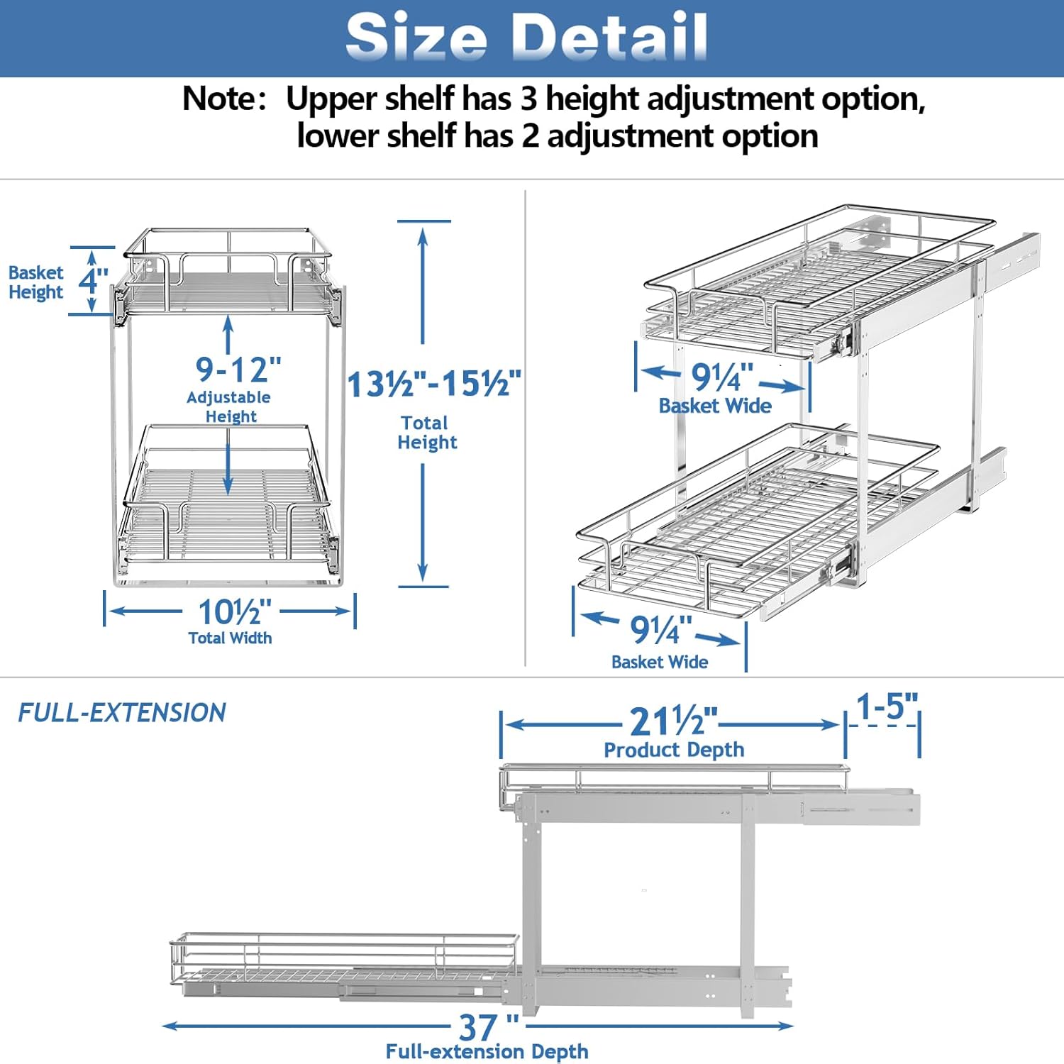 - 【Efficient Kitchen Organizer】Features a full-extension ball-bearing system which slides smoothly; Durable and strong organizer that can hold up to 100-pounds of weight.
