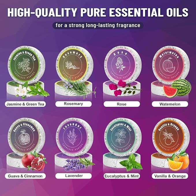 - LUXURY GIFT SETS: Provides you with a set of 8 individually wrapped shower steamers and 1 sets of yarn bag hooks, that will stay fresh for a longer period of time, it's on many people's wish list, a gift for your mom, wife, girlfriend, the woman you love, she/ him, a gift for kids, for Valentine's Day, Mother's Day, Christmas, birthday gifts, etc.