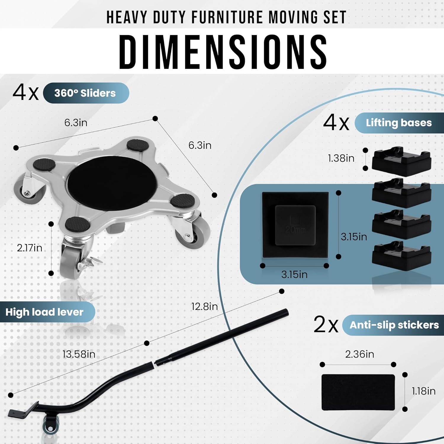 - π¦ COMPLETE MOVING KIT: Includes 4 sliders with non-slip bases and a furniture lifter tool for safe, efficient moving. A reliable all-in-one solution for any home or office move.