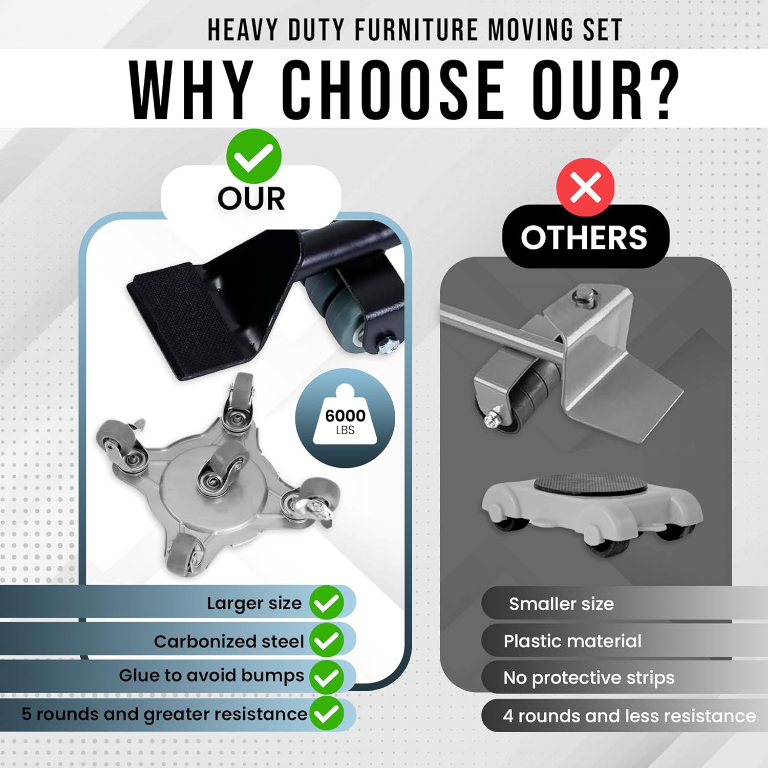 - π Stable Movement with Integrated Brakes: This furniture moving set features 4 wheels with built-in brakes, ensuring superior stability and control during use. Glide heavy furniture with ease and stop securely when needed for a safer and more efficient moving experience.